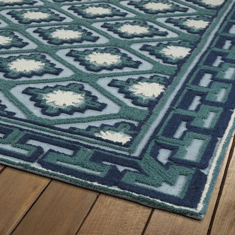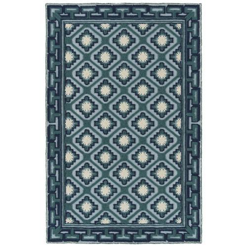Kaleen Ayrlies Garden 9 x 12 Teal Indoor/Outdoor Geometric Global Handcrafted Area Rug