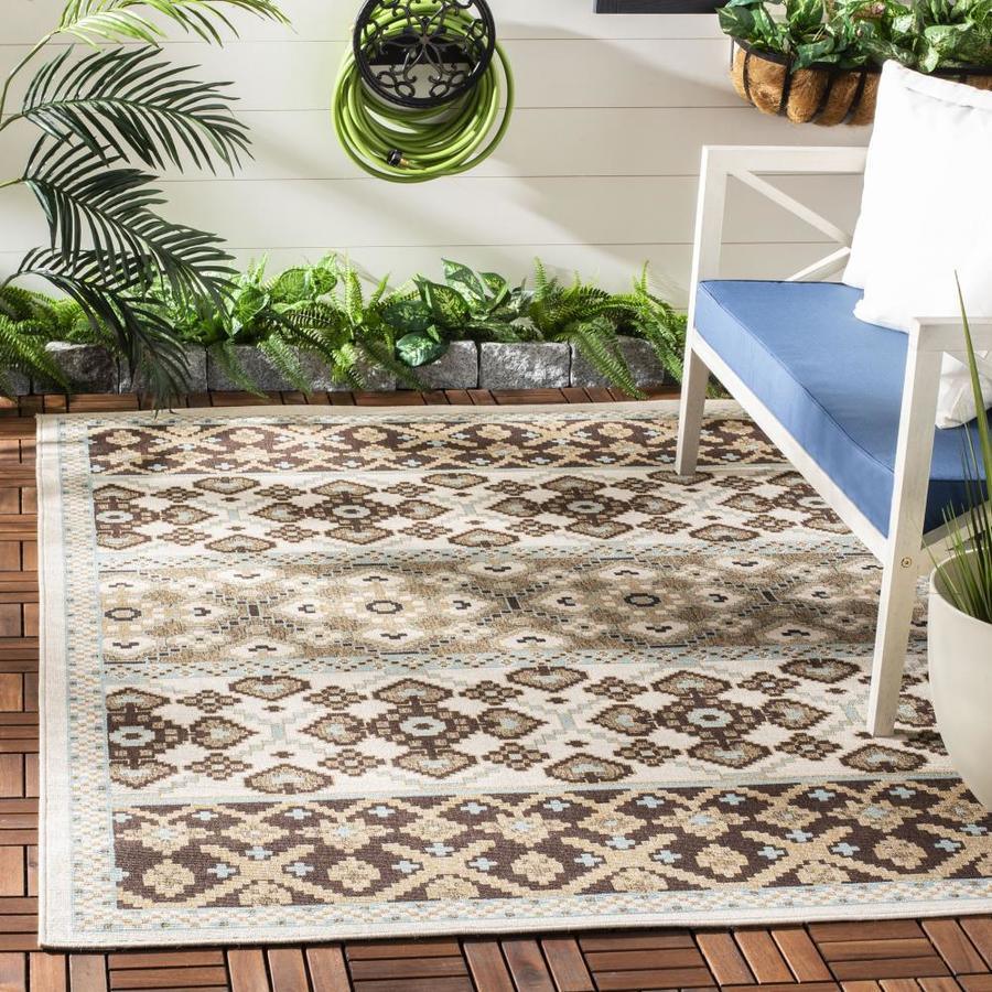 Safavieh Veranda 2-ft-7-in x 5-ft (Cream/Chocolate) 3 x 5 Cream/Chocolate Indoor/Outdoor Abstract Coastal Throw Rug