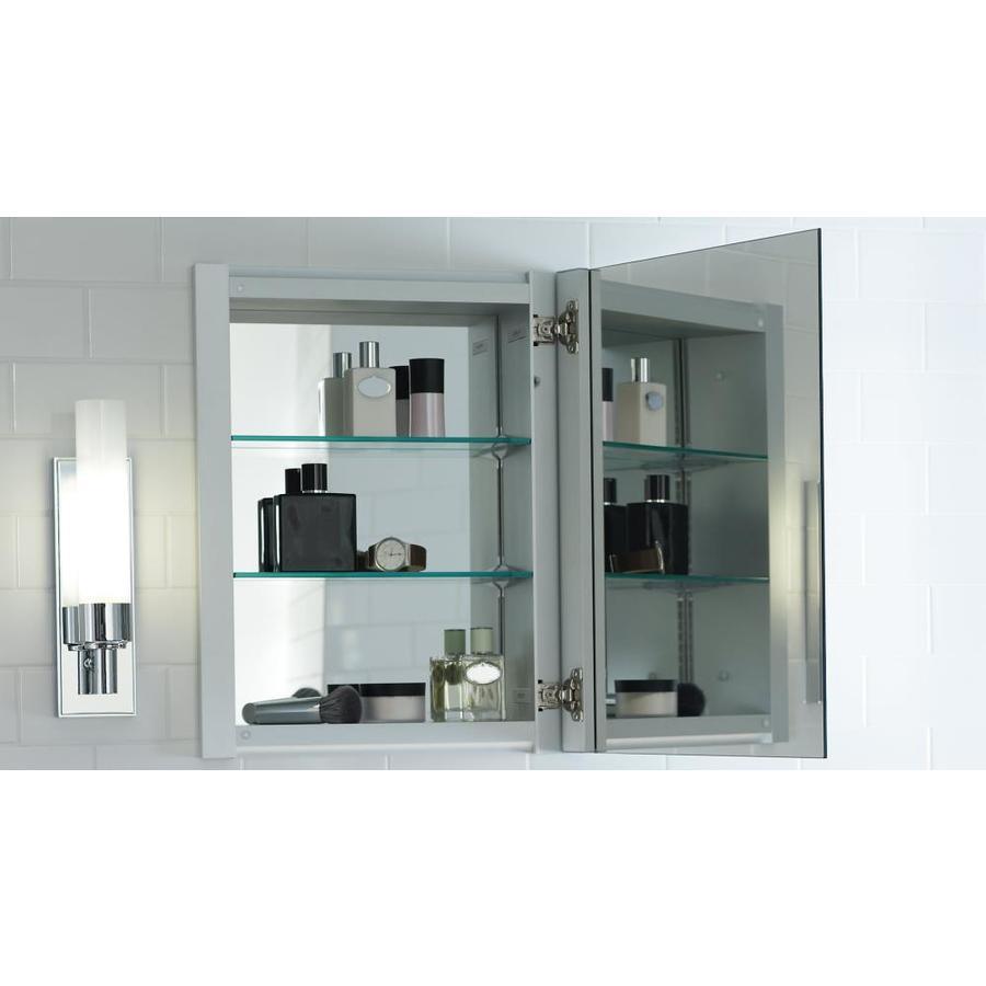 Ideal for remodeling, features 1-in flange covers imperfections on the wall from existing cabinets or paint lines Mirrored door available polished edge or beveled edge Cantilever shelves conceal adjustment holes, for a custom-built appearance Slow-close functionality and 108-degree adjustable hinge make closing easy Three mirror construction - front of door and back of cabinet allow increased functionality