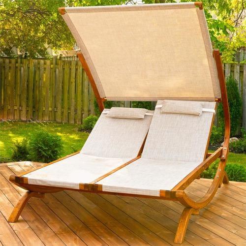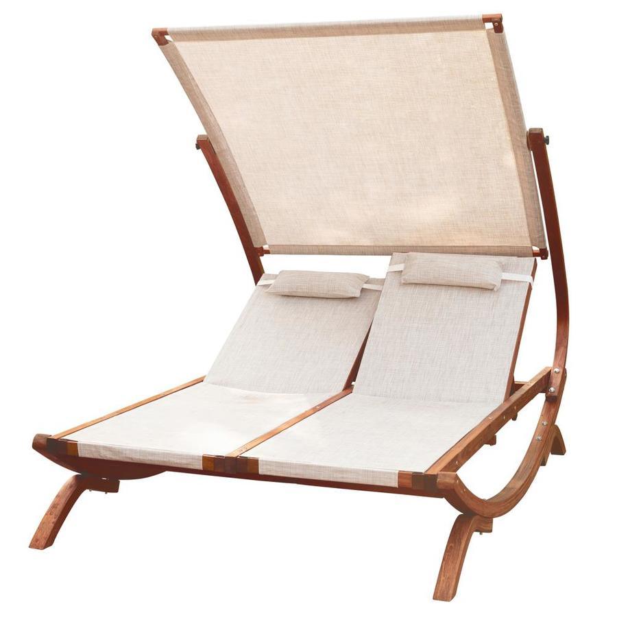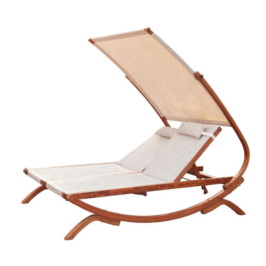 Acrylic protective coating Crafted of solid larch hardwood valued for its tough, water resistant and durable qualities Medium brown, blends easily with other decor and natural setting 2 pillows included