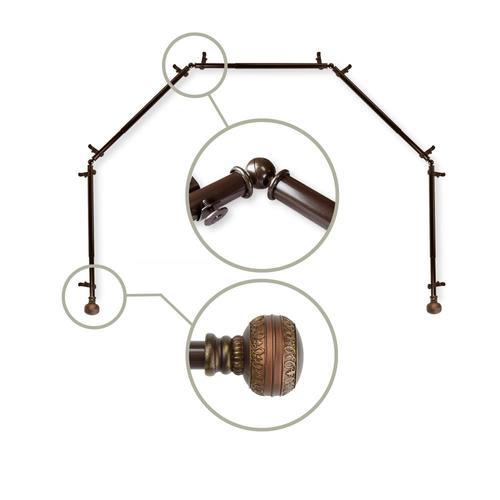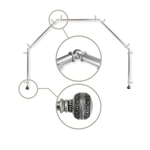 Includes five 13/16-in diameter adjustable poles, ten brackets, four corner connectors, one pair of decorative finials, and mounting hardware Finial measurement: 2-7/8-in W x 2-in H x 2-in D Bracket projection: 2.875 inch Bracket clearance: 2 inch Each side is adjustable from 28-48 inch Material: steel rod/resin finials