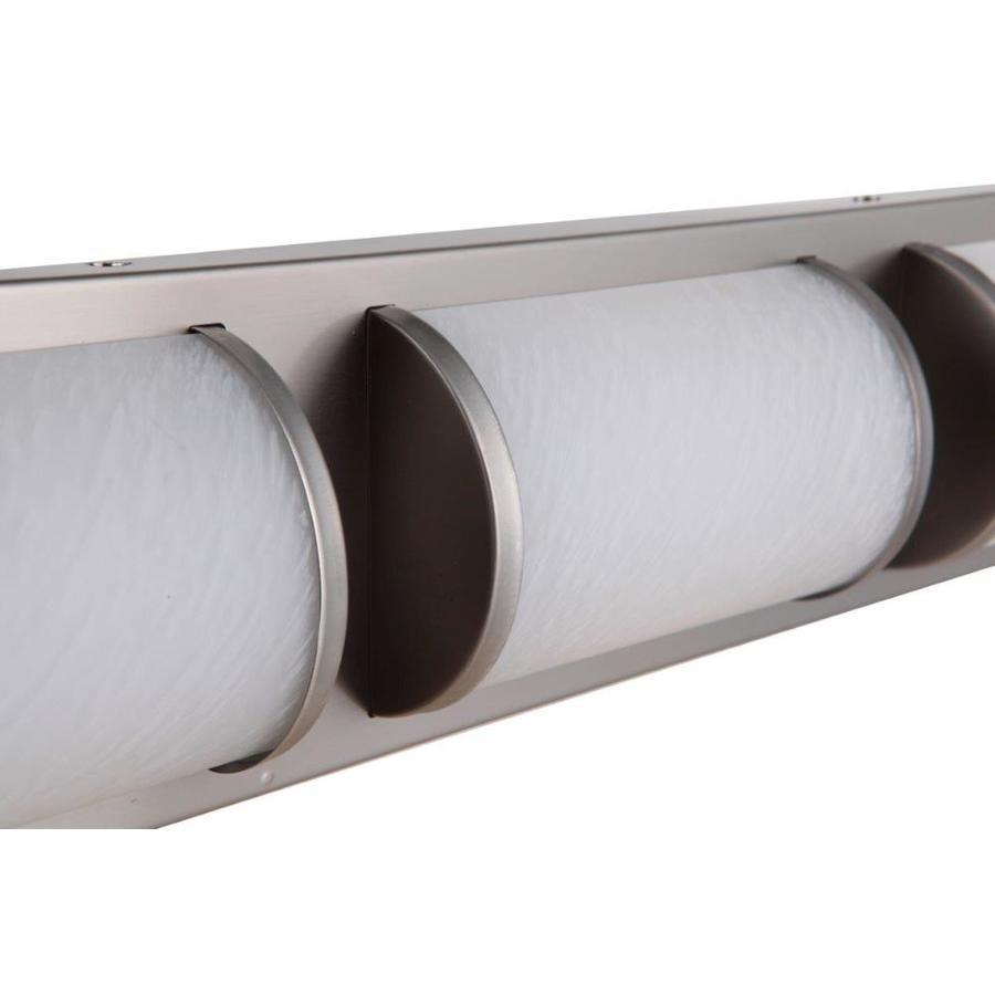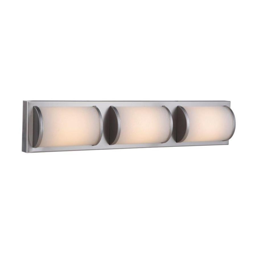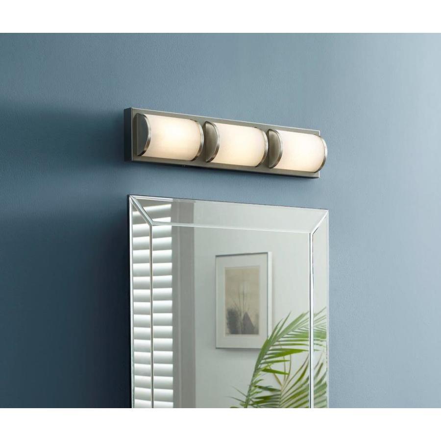Brushed nickel finish is clean and timeless Brushed white glass shades beautifully diffuse light Integrated LED light source means you never need to change a light bulb Perfect for modern or transitional decor Mounting hardware included for easy installation Damp rated for use in bathrooms UL listing demonstrates this product has met the minimum requirements of widely accepted product safety standards This product has been tested and is compatible with the following dimmer switches: 471635 Lutron Maestro, 160613 Lutron Diva dimmer, 648076 Lutron Caseta, 761407 Legrand Radiant, 480245 Eaton HALO