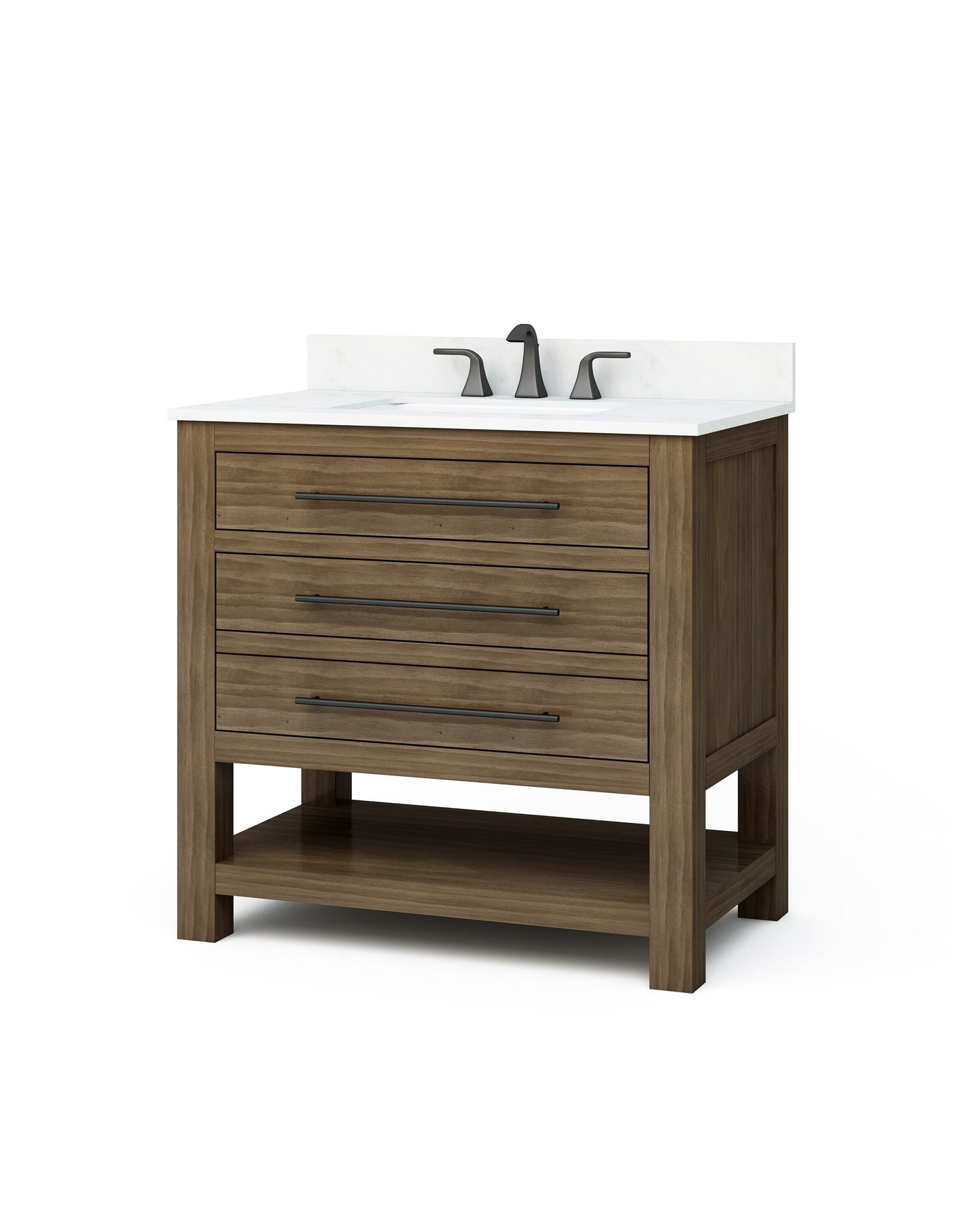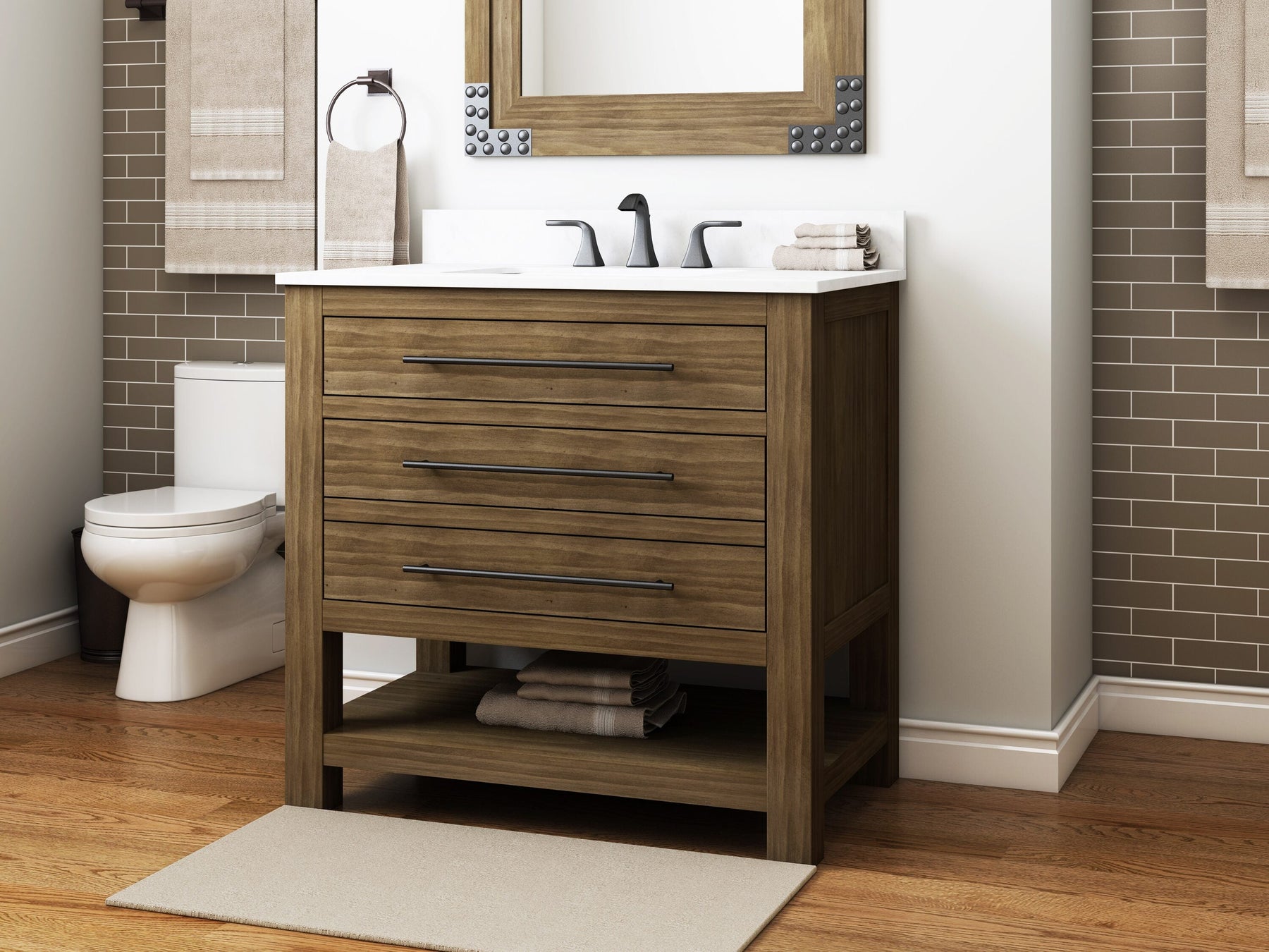 allen + roth Kennilton 36-in Gray Oak Single Sink Bathroom Vanity with Gray Oak Engineered Stone Top