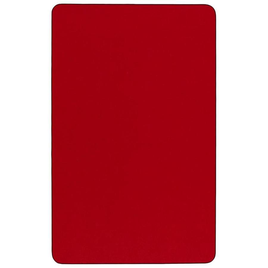 Popular Rectangular Activity Table Recommended Grade Level: Preschool - 2nd Grade Recommended Seating Capacity: 8 Children Scratch and Stain Resistant Surface 1.125-in Thick Thermal Fused Red Laminate Top Black Edge Band 16 Gauge Tubular Steel Legs Black Powder Coated Upper Legs and Chrome Lower Legs Legs Adjust in 1-in Increments