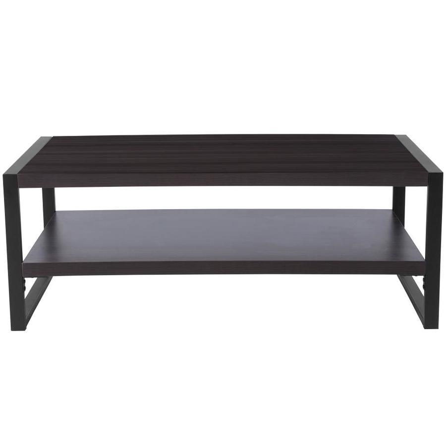 Contemporary Style Charcoal Wood Grain Laminate Finish 1.5-in Thick Rectangle Top Height Between Shelves: 8.25-inH Black Powder Coated Frame Finish Adjustable Floor Glides