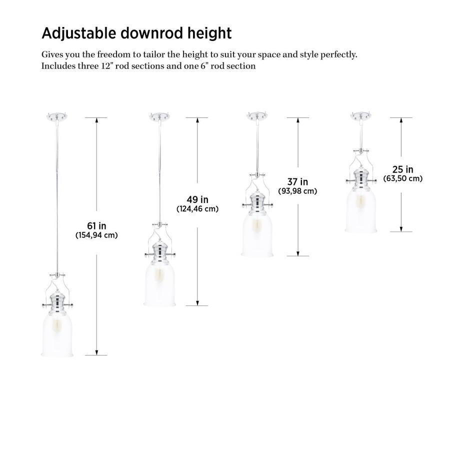 Dimmable: fully dimmable with compatible dimmer switch to create the perfect atmosphere Easy install: includes all mounting hardware for quick and easy installation Modern design: the polished chrome accent and blown glass are an effortless design element for any interior space Adjustable rod length