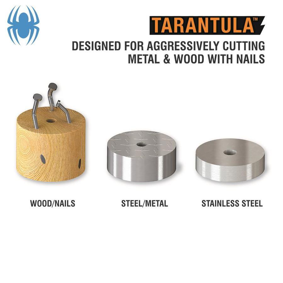 Rapid core eject system 5x faster Tungsten carbide tipped blades allow for up to 50x more cuts Cuts through metal Kit contains: 1-in, 1-1/8-in, 1-3/8-in, 1-1/2-in, 2-in hole saws, 3/8-in arbor and pilot, 1/2-in arbor and pilot 10x faster when compared to conventional hole saws Cutting depth of 2-3/8-in For use on nail embedded wood, plastic, PVC, all metal, stainless steel and cement fiber board