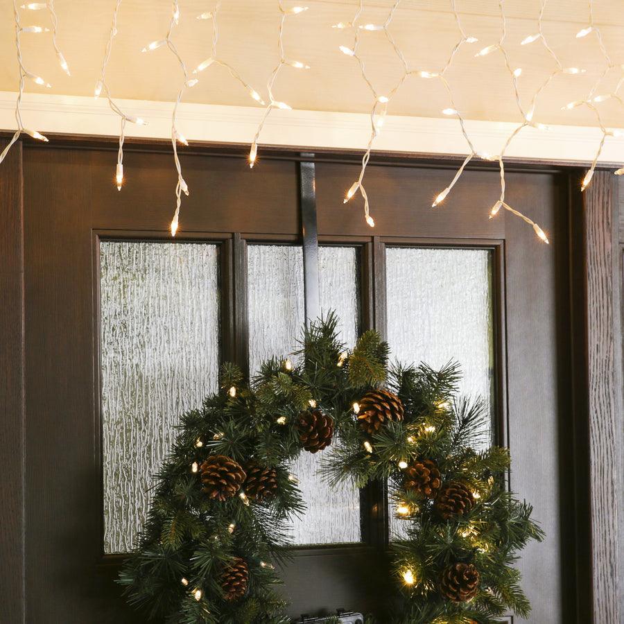 GE String-A-Long 300-count clear icicle light set 13.25-Feet lighted length with 3-inch end connector plug Can connect up to 3 sets For indoor or outdoor use Replacement bulbs and fuses included for added convenience