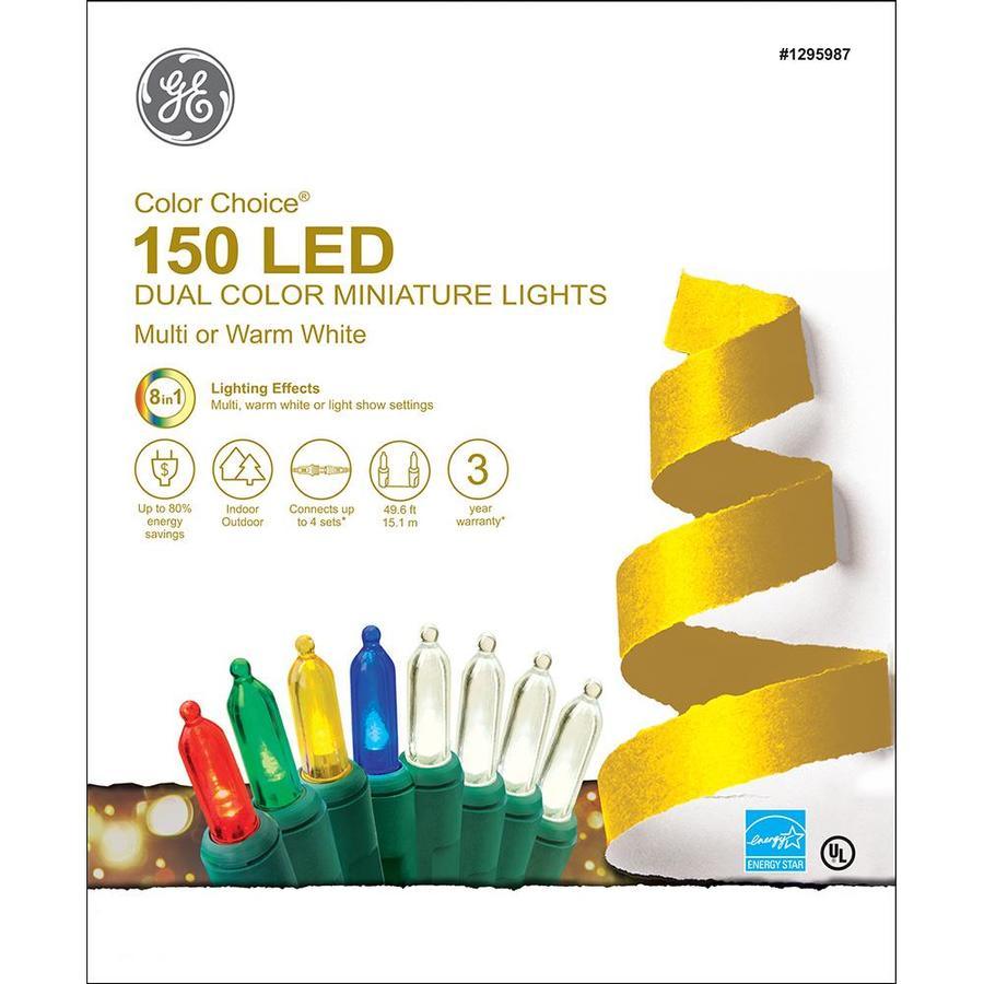 150-Count GE LED Color Choice string light set Use control box to choose between warm white, multicolor or light show With LED lights you get up to 80% energy savings Can connect up to 4 sets Replacement bulbs and fuses included for added convenience ENERGY STAR rated Available only at ARB265W