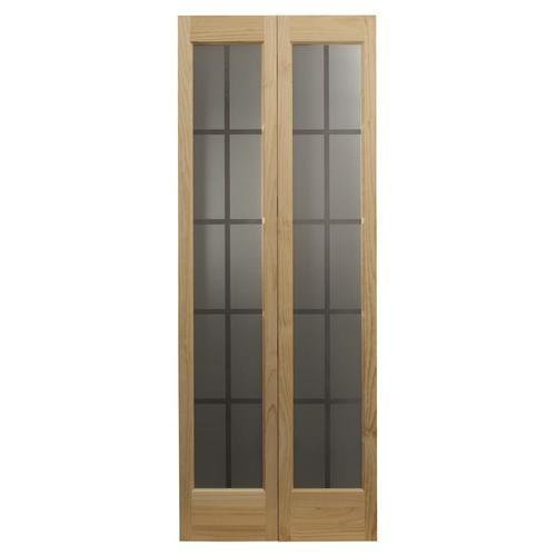 Pinecroft Mission 32-in x 80-in Unfinished Pine Wood 2-Panel Square Decorative Glass Unfinished Pine Wood Bifold Door (Hardware Included)