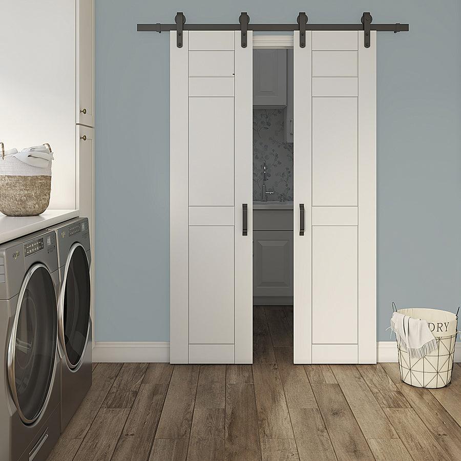Double barn door 42-in x 84-in White 2-Panel Prefinished Molded Composite Double Barn Door (Hardware Included)