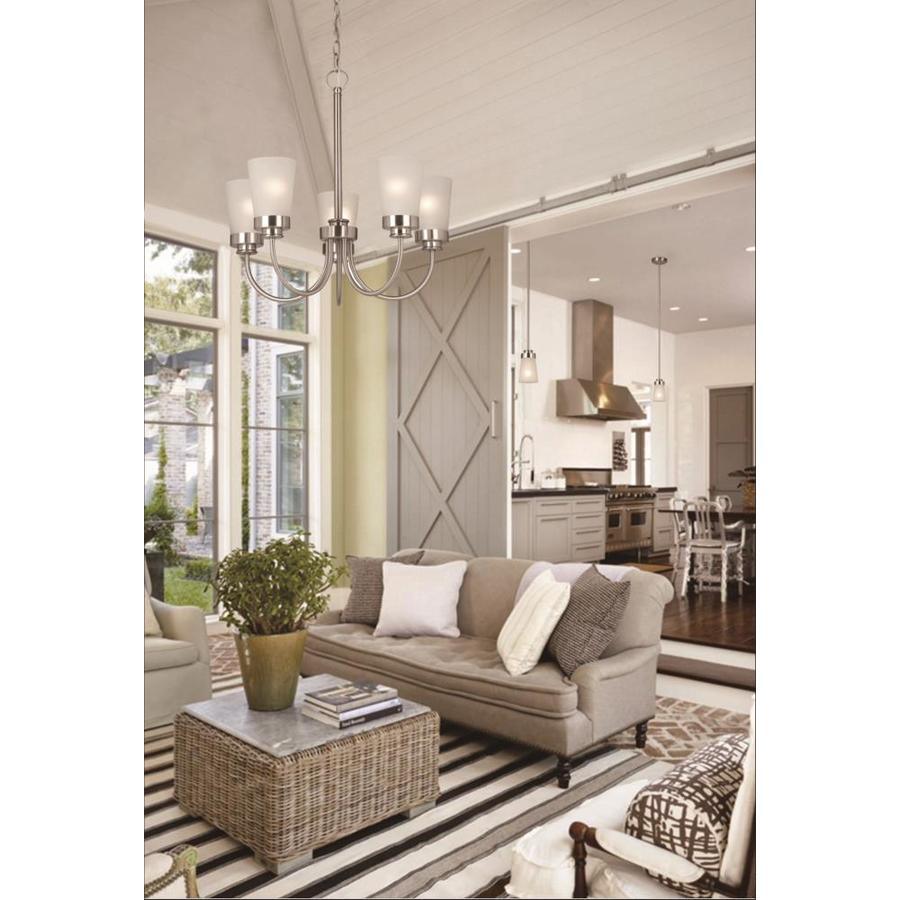 Decorate with ease using the appealing brushed nickel finish Etched glass shades shine with a cool glow Great for updated traditional, minimalist, and modern style decor environments One 60-watt medium base A19 bulbs required (not included) Installed as an uplight only(mounting hardware and detailed instructions included) Light is dimmable, so you can create your desired ambiance