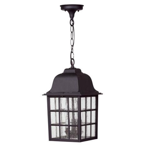 Craftmade Grid Cage Textured Matte Black Traditional Seeded Glass Square Pendant Light