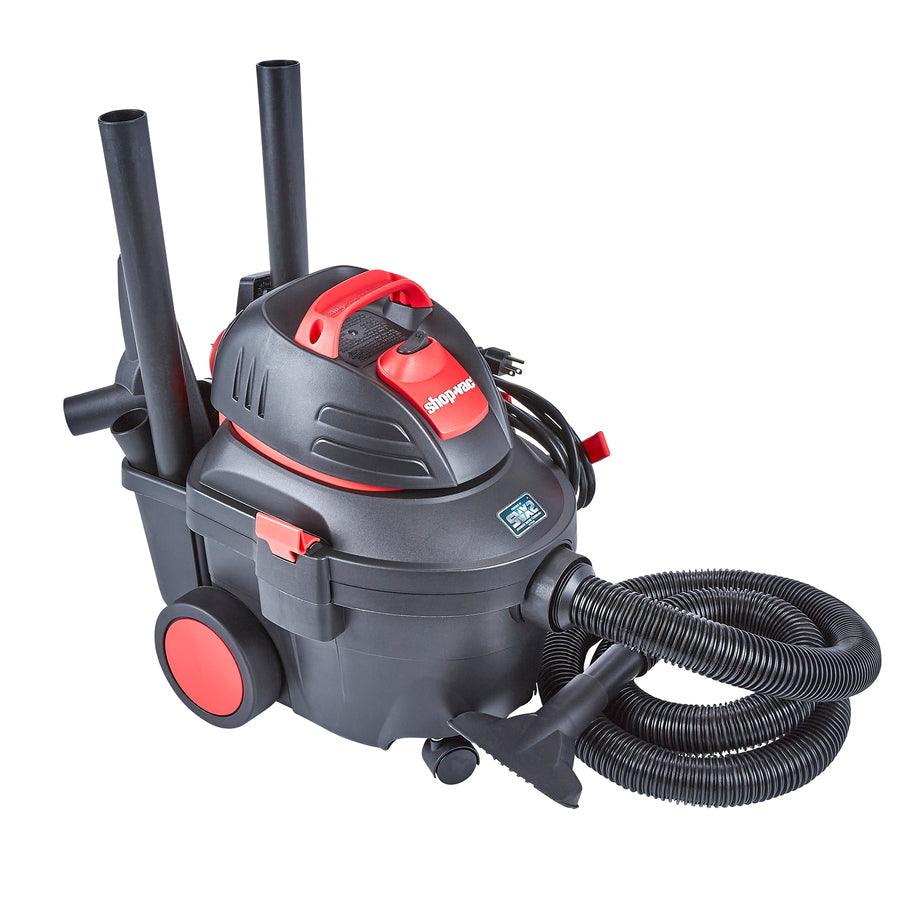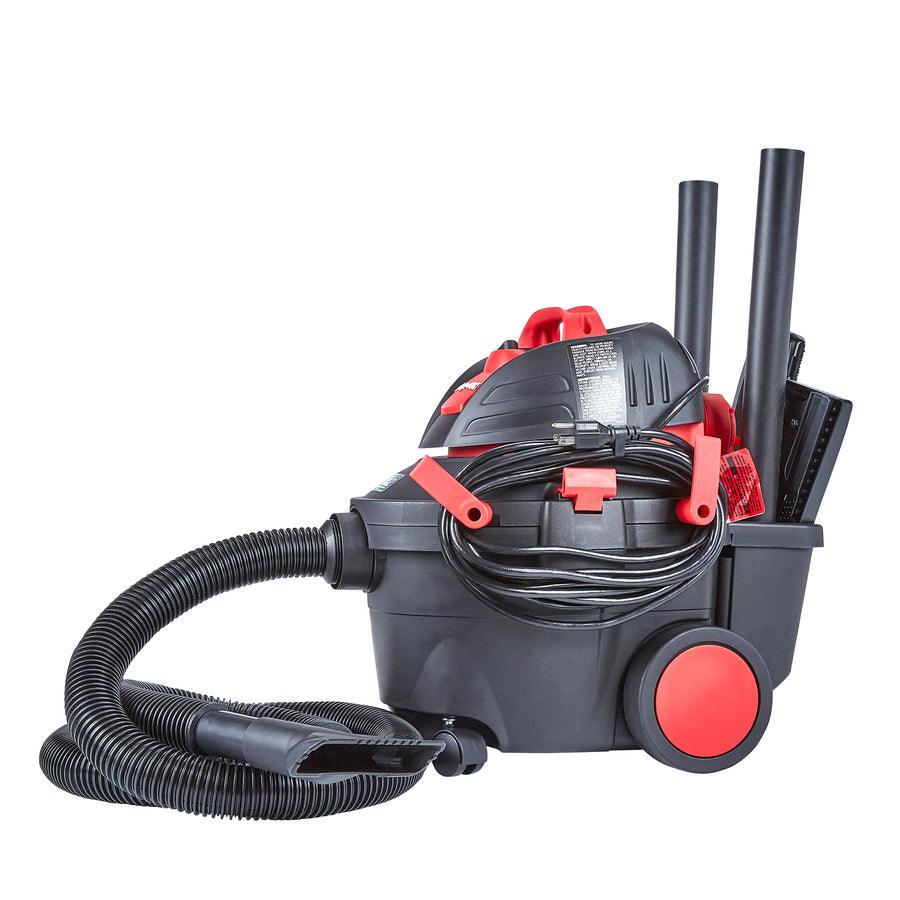 Power, compact household shop vacuum tackles a variety of cleaning tasks Rear blower port converts your vacuum to powerful blower On board cord and accessory storage Rear wheels and top carry handle for portability