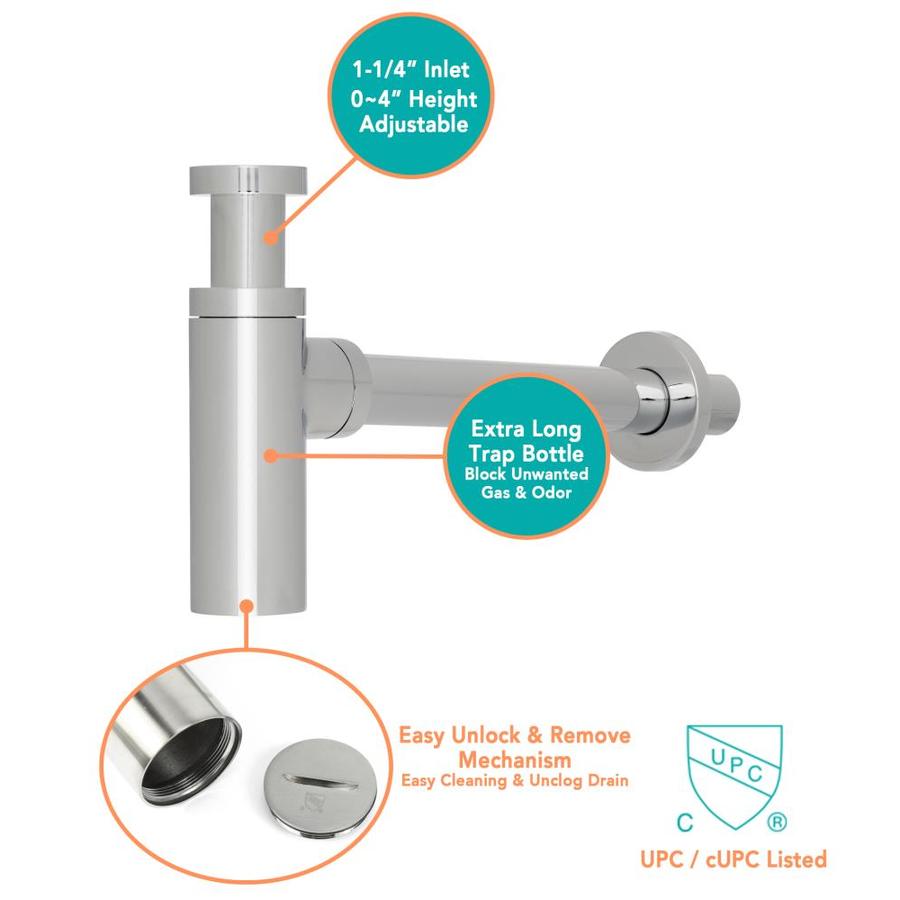 The easy unlock and remove mechanism at the bottom of the bottle makes it so easy to remove the base of the P-trap; so you can clear and clean the bottle and drain tube when necessary, especially useful when you have a clogged drain