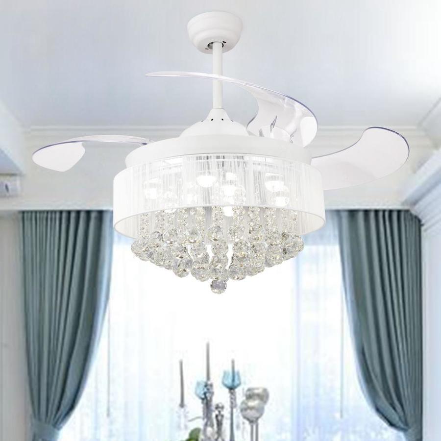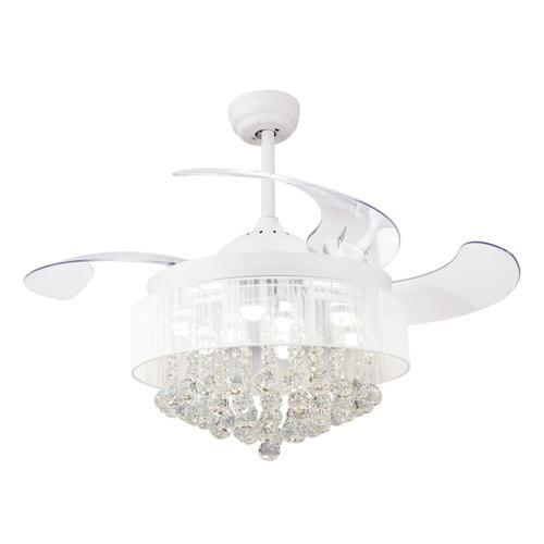 Modern crystal ceiling fan: retractable 4 blades ceiling fan and crystal chandelier 2 In. 1, fits perfectly in any modern-style environment