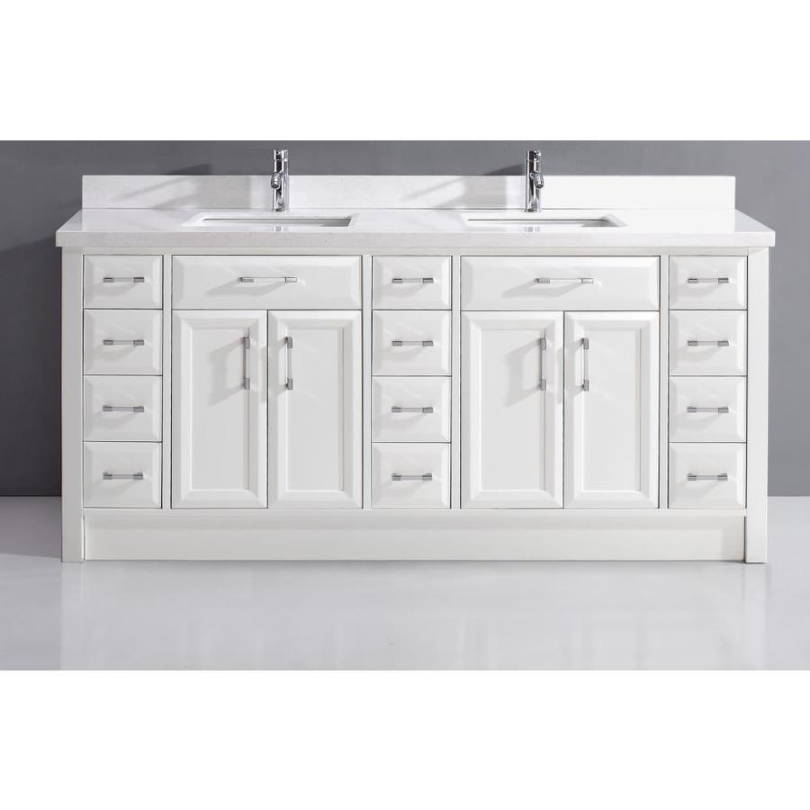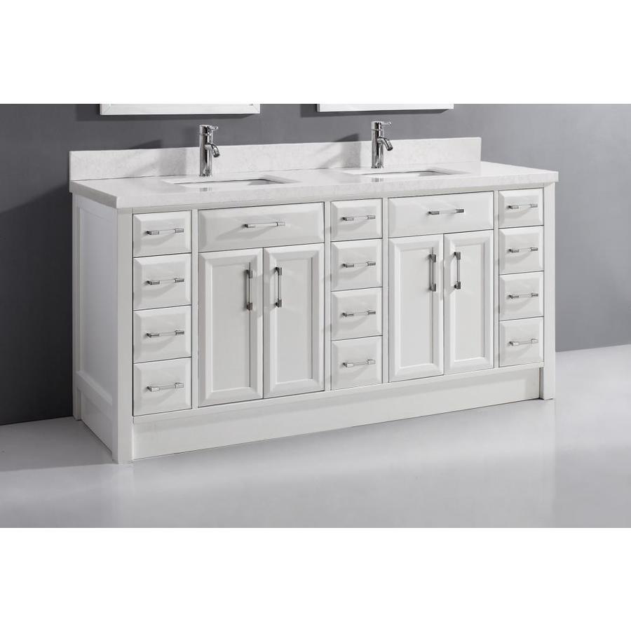 Spa Bathe Calumet 75-in White Double Sink Bathroom Vanity with White with Grey Veins Engineered Stone Top