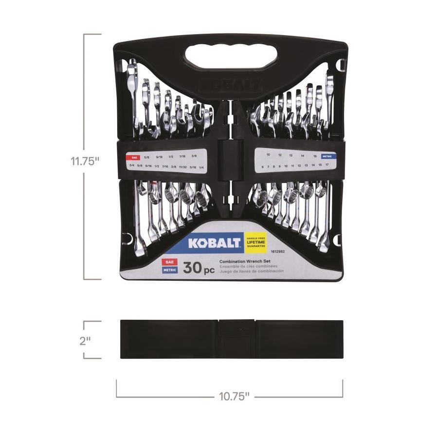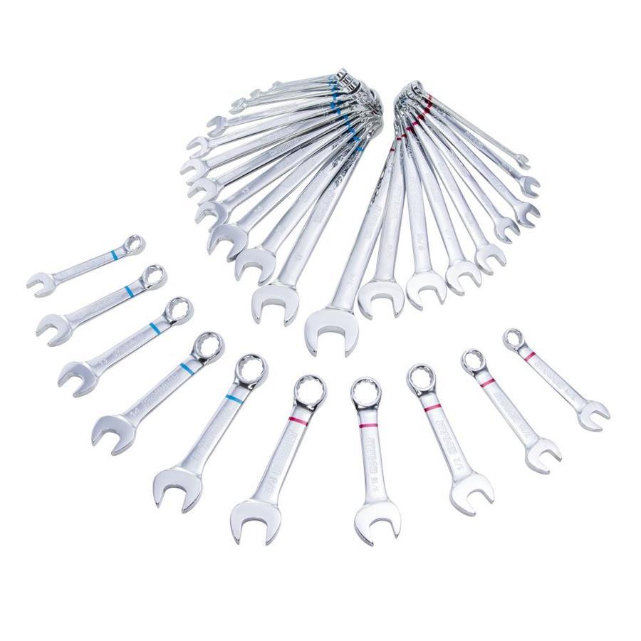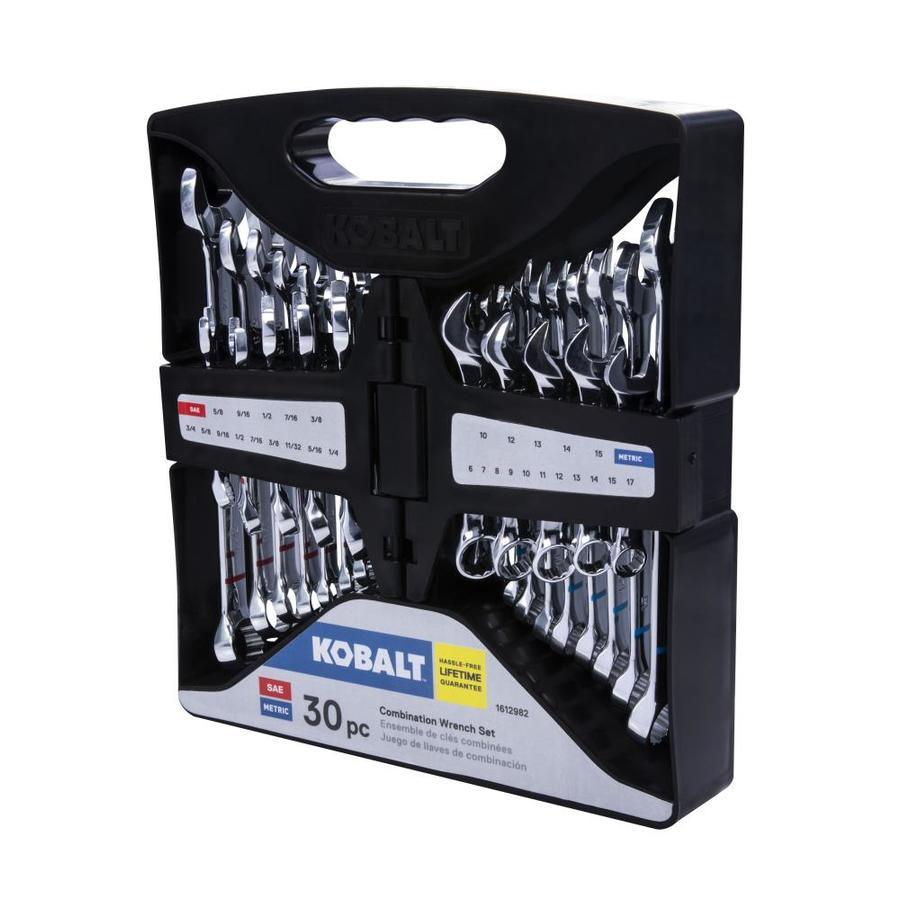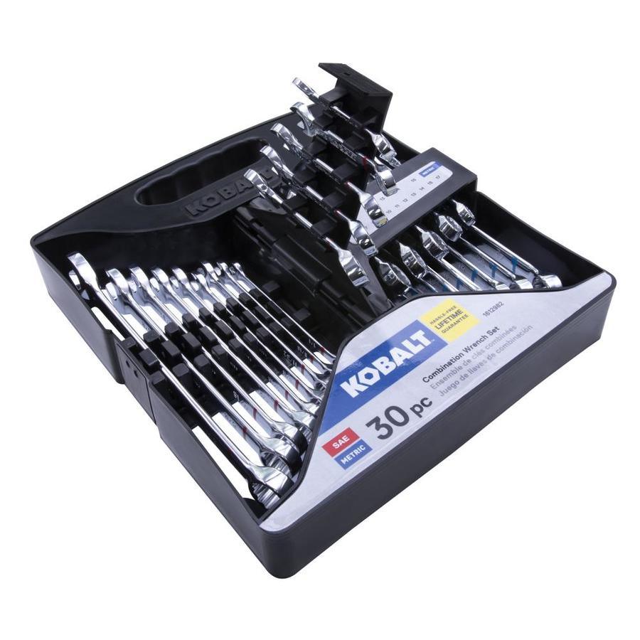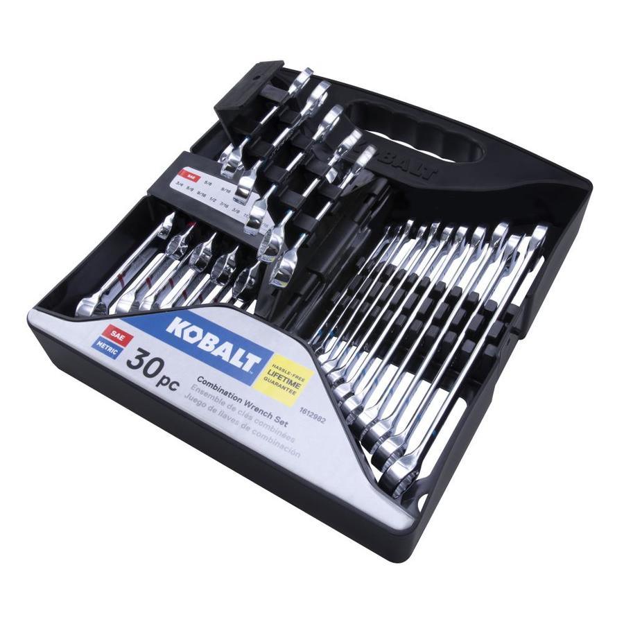 This 30-piece wrench sets is constructed of chrome vanadium steel and is heat treated for strength and durability