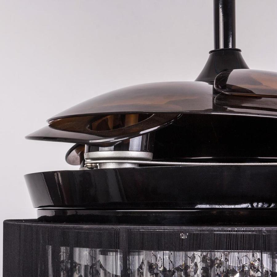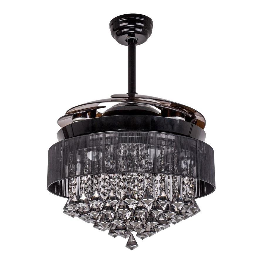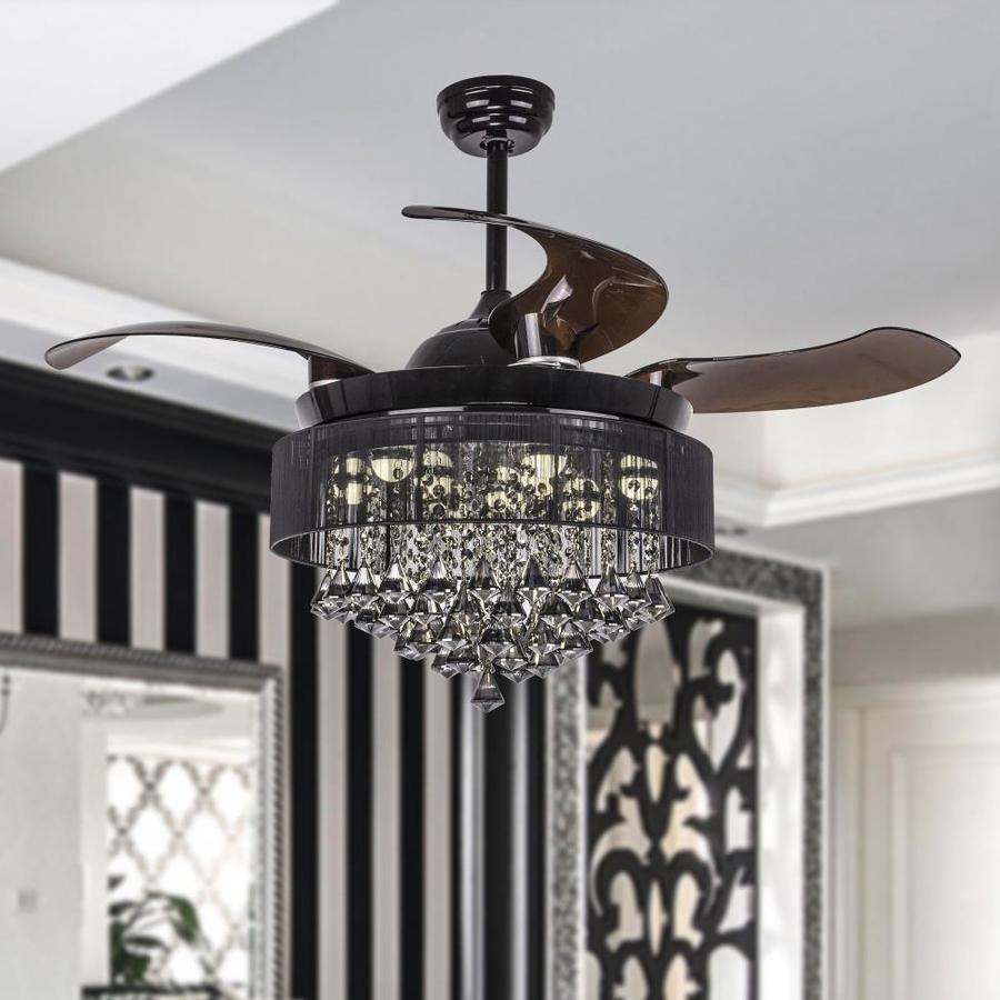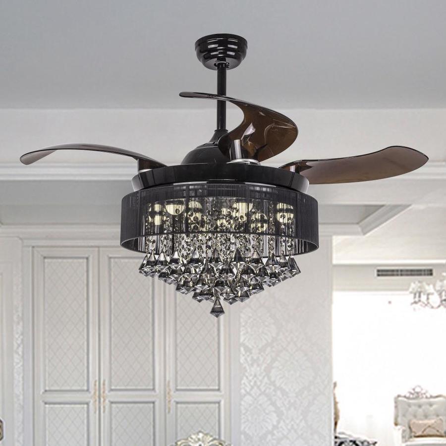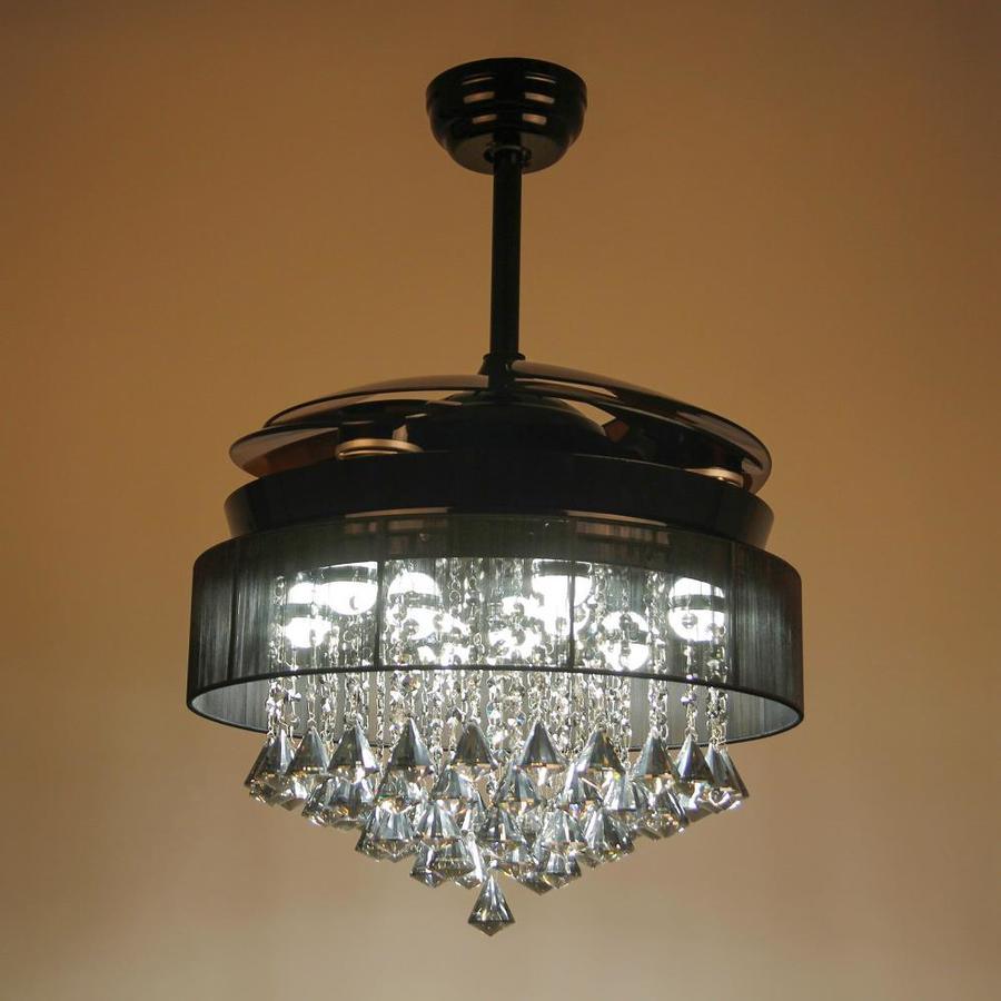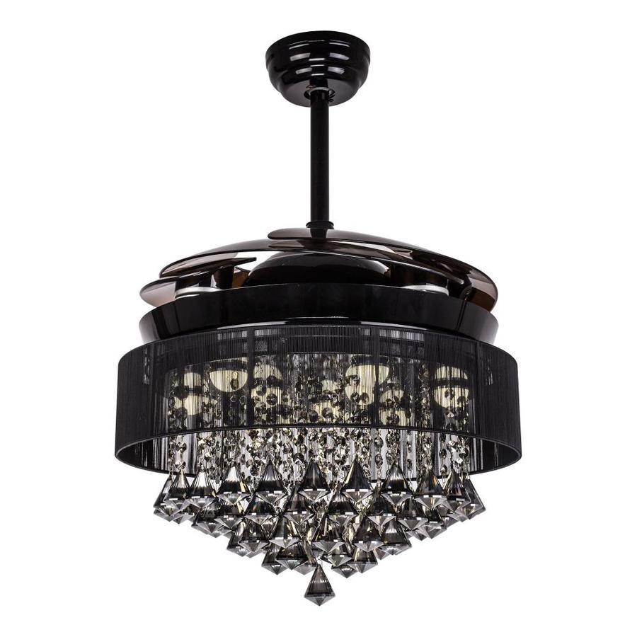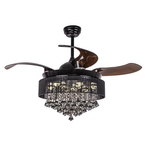 Modern crystal ceiling fan: retractable 4 blades ceiling fan and crystal chandelier 2 In. 1, fits perfectly in any modern-style environment Whisper-quiet motor quietly generates optimal airflow using 3-speeds feature providing year-round comfort 32-Watt light fixture using nine 3.5-watt LED bulbs (included) Remote control included- this high-end remote control allows you to control the light and the fan speed separately and from anywhere in the room Retractable blades- blades open and closed by remote control, when closed, it is a beautiful 20.8-inch crystal chandelier, when open, it is a 46-inch ceiling fan 46-In fan provides airflow up to 3600-CFM, making it ideal for small room 4-In and 10-In L down rod included (can also be installed as max 15 degrees angle mount) Offering a limited lifetime motor warranty on all ceiling fans; with a 1-year warranty on all parts