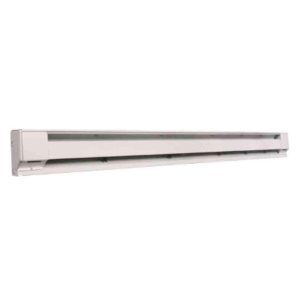 This hydronic baseboard heater offers efficient warmth without a fan, making it suitable for those with allergies. It conforms to Department of Energy standards, converting all electric energy into heat, and will automatically turn off if it detects an unsafe temperature. The UL-listed design allows for safe installation on carpet, tile, or other flooring. Its low-profile design allows for discreet mounting in bedrooms, bathrooms, living rooms and dens. It can be easily connected to power from either side, or multiple units can be chained together for a larger heating area. This hard-wired, 1500-Watt heater measures 72 inches in length and operates at 240 volts and 6.3 amps.