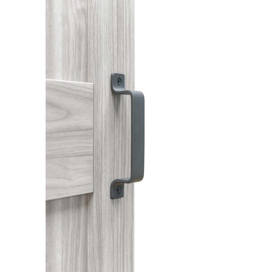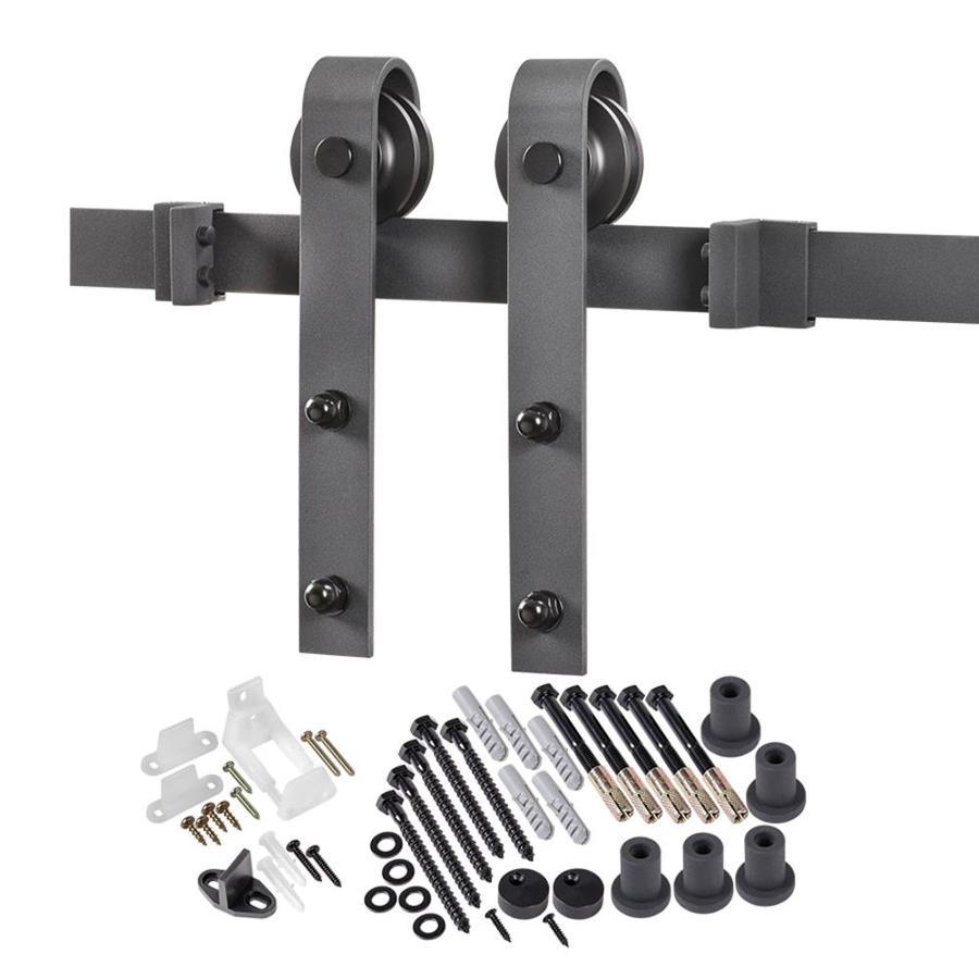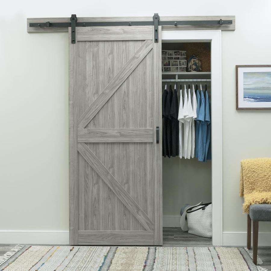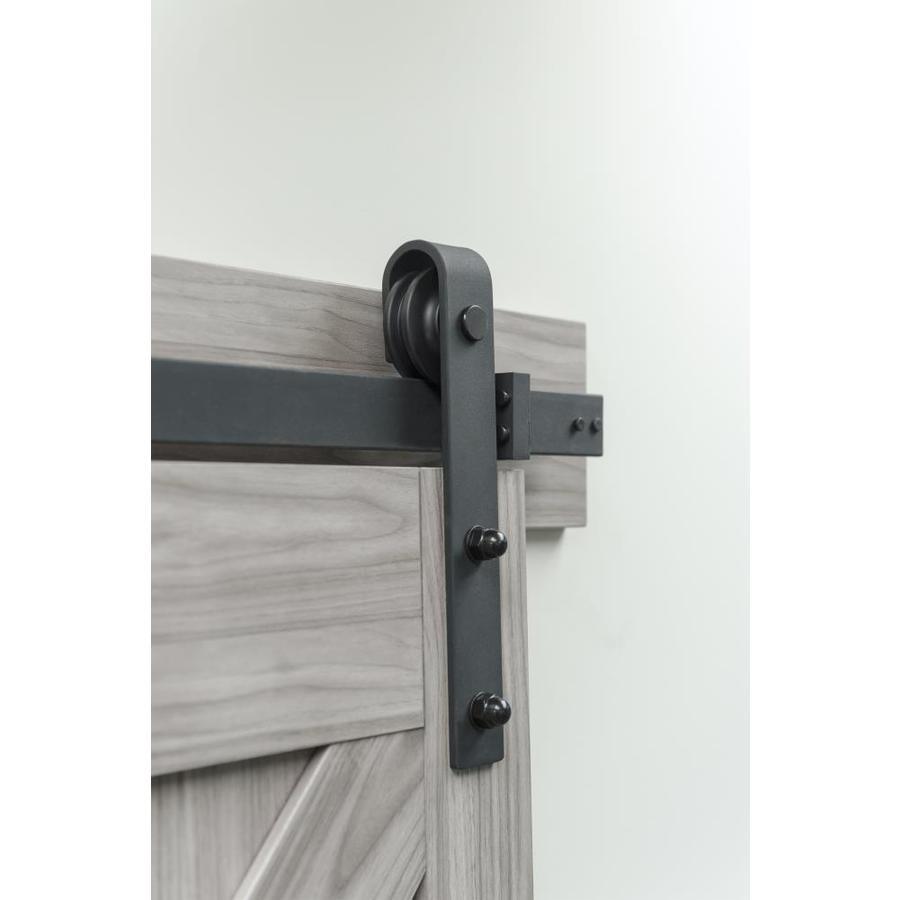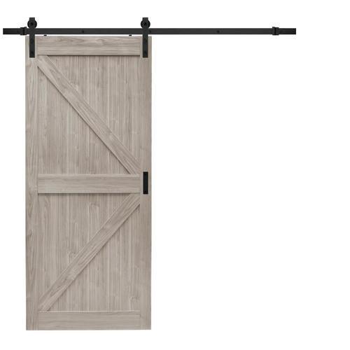 Barn door kit includes: rustic matte black hardware, track, handle, wood backer and barn door