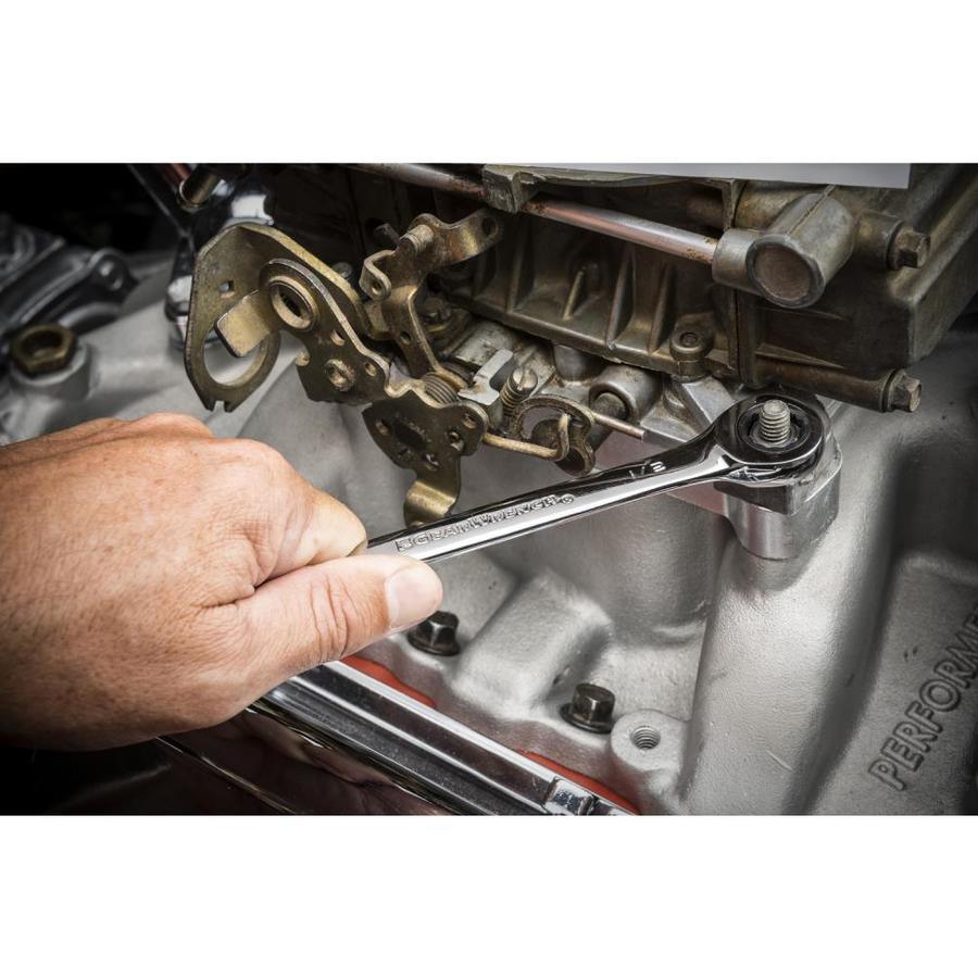 XL GearBox design has a longer beam to increase leverage and torque Non-ratcheting end for breaking loose stubborn fasteners 0 Degree offset and slim profile to access the tightest spaces and recessed fasteners Off-corner loading design on box end for better grip and reduced fastener rounding Manufactured from alloy steel for better strength and longer tool life Bright, full polish chrome finish easily wipes clean and resists corrosion Sizes included 8, 9, 10, 11, 12, 13, 14, 15, 16, 17, 18, 19, 20, 21, 22, 24, 25