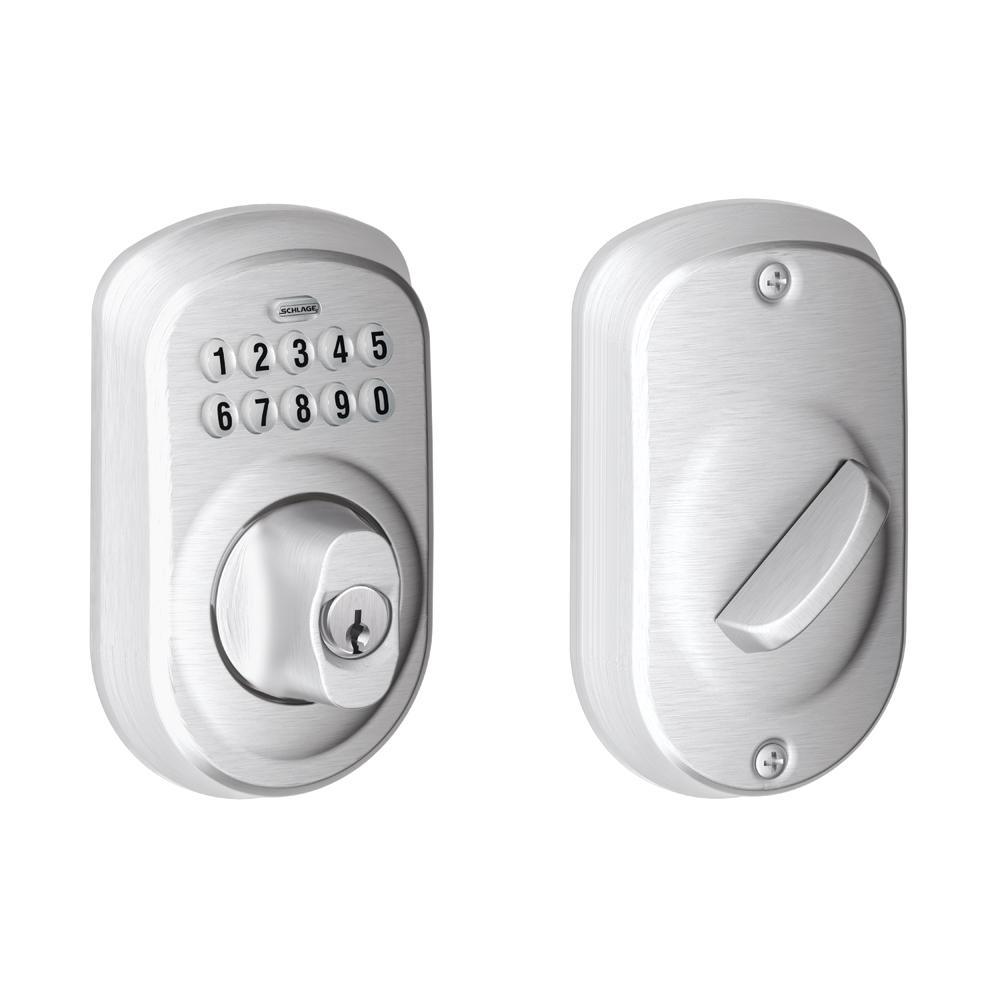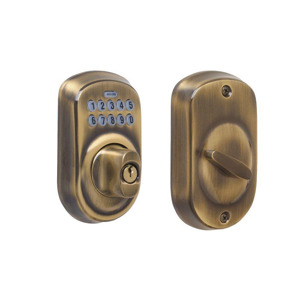 This Plymouth Bright Brass Keypad Electronic Deadbolt offers keyless access and provide maximum security protection to make your life more convenient. Install and program in minutes with no wiring required. Schlage has built a legacy of providing the highest level of security to homes and businesses; install a Schlage and you install nearly a century of total dedication to security, quality and innovation.