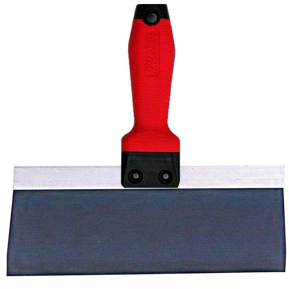 Featuring Wal-Board Tools 8 in. Taping Knife with premium blue steel blade. This taping knife sports a soft- grip handle that provides slip-resistant and comfortable use. The knife mounting is tempered aluminum for added strength. One of the most lightweight knives on the market.