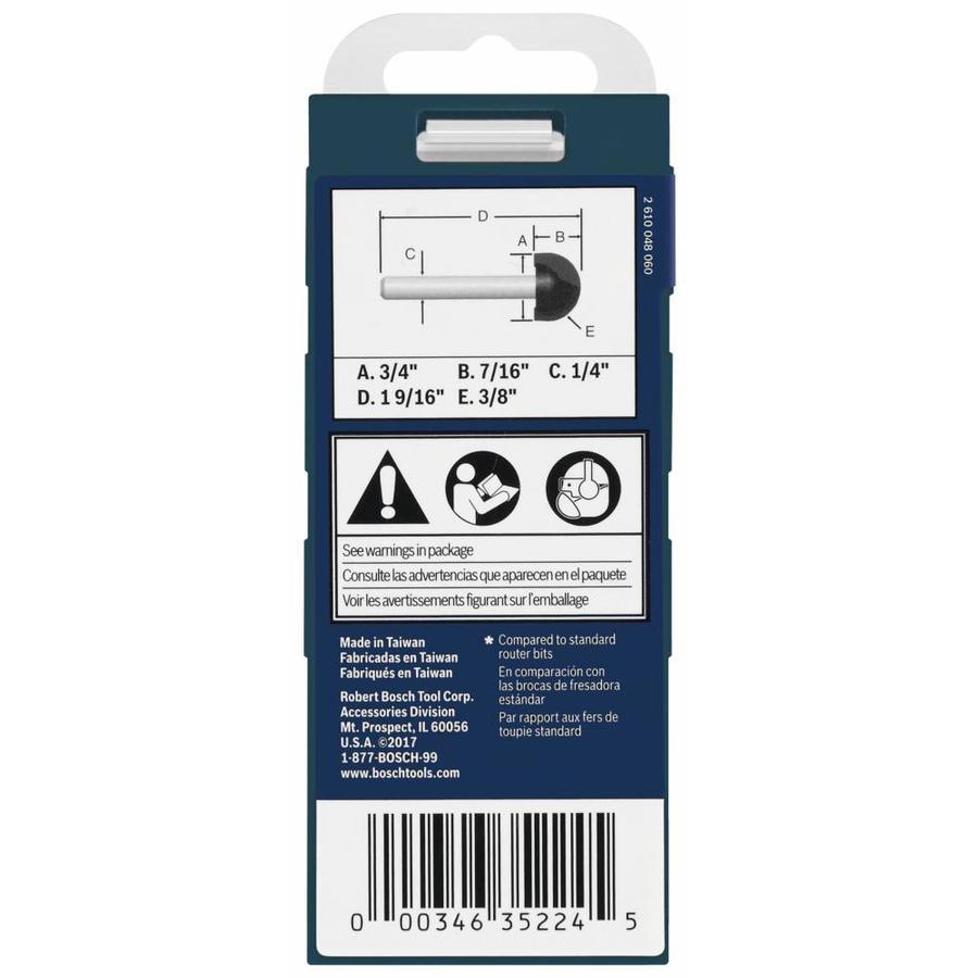 Micrograin carbide-tip router bit design – ensures consistently smooth finish cuts, with superior wear resistance Core box design – cuts rounded surfaces grooves used in a variety of applications including doors and columns Control cut design – helps minimize kickback Reinforced shanks – feature fully hardened and tempered steel shanks that provide ultimate durability Upgraded micrograin carbide – engineered for precise cuts and for long bit life Bosch-exclusive heat-treating process – provides hardness and withstands high temperatures Comprehensive line of bits – features hundreds of profiles for mortising, edge forming, trimming, surface forming, and cabinetry/joinery in wood, plastic and laminate