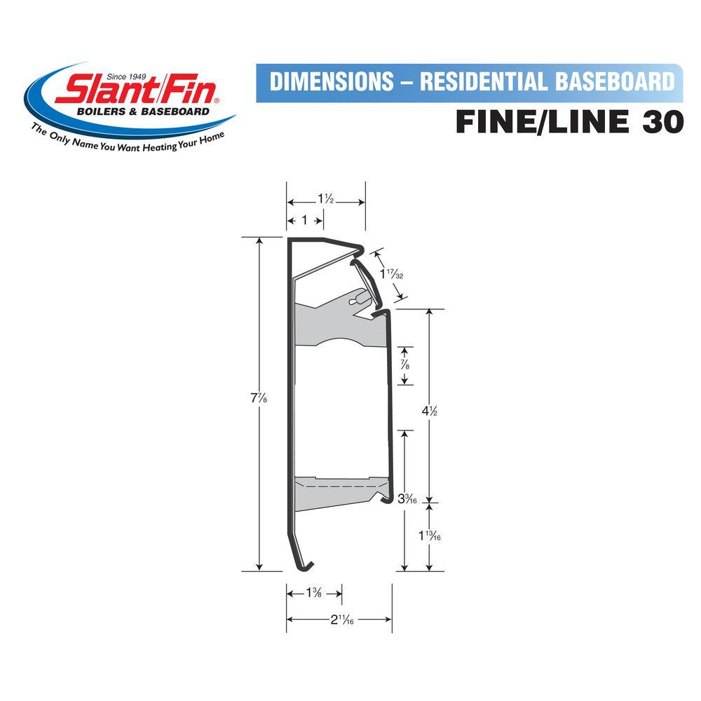 The Fineline 30 3 ft. Baseboard-Heating Enclosure provides durable coverage for exposed pipe or tubing. Nu-White enamel can be used as is or can be painted or wallpapered to match any decor. Elegant rounded edges give your installation a more distinctive look. Slant/Fin baseboard can be installed flush to the wall or recessed for a more concealed look.