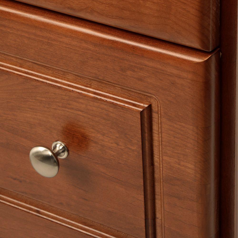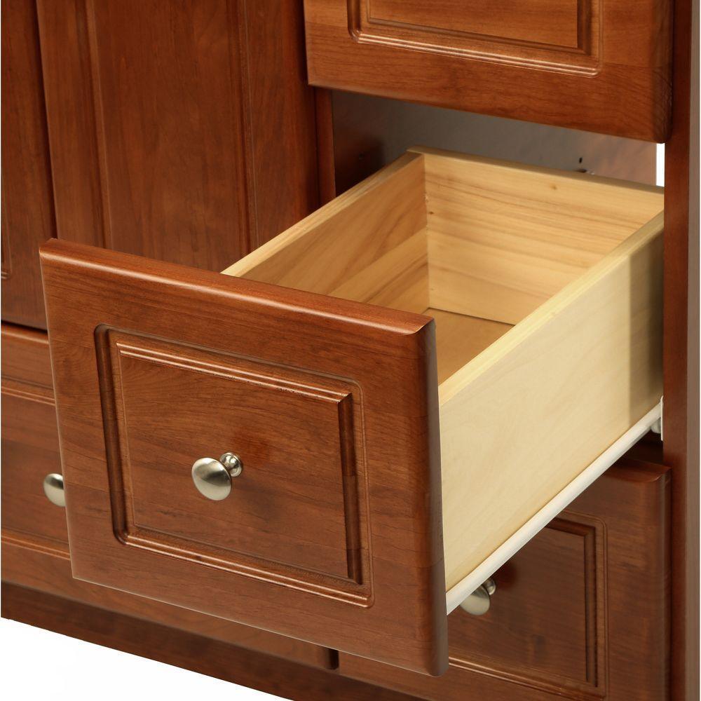 Offered in a medium alder finish, this Simplicity by Strasser Woodenworks Ultraline vanity is a solid value with attractive style, attention to detail and quality workmanship. Every one of our vanities maximizes usable storage space and has a unique drawer under the doors. Classy satin nickel finish knobs are solid cast metal and already installed. With quality durable hardware, doors and drawers close smoothly and keep snugly closed, plus are easily adjusted for exact door and drawer alignment. Vanities, drawer banks, medicine cabinets, wall storage in the form of cubbies and overjohns and mirrors make up the Simplicity collection. They are, of course, designed to perfectly complement each other so you can create your perfect bath furniture ensemble. Strasser Woodenworks introduced the Simplicity brand for homeowners seeking quality bath furnishings that are stylish, budget friendly and crafted in USA.