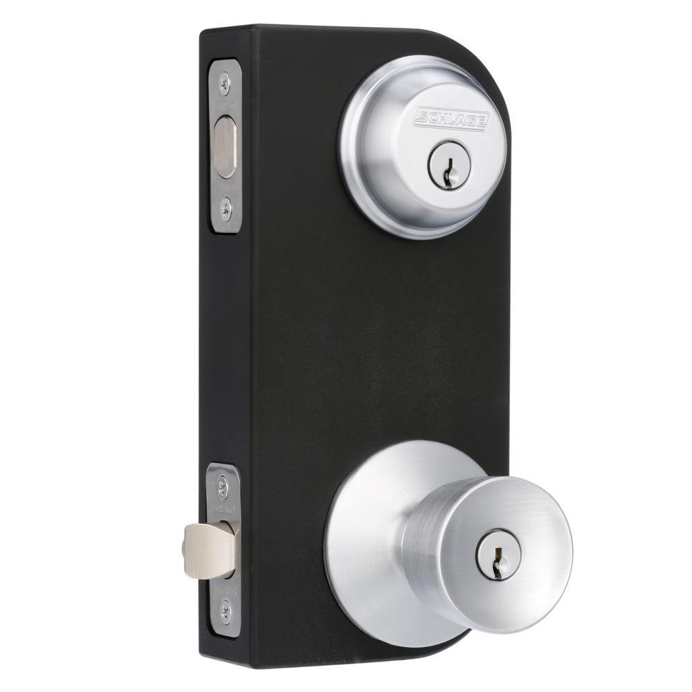 The Schlage Satin Chrome Single Cylinder Deadbolt with Bell Entry Door Knob Combo Pack is perfect for use on exterior doors where extra security is needed. The Bell knob has an understated look that seamlessly blends into virtually any decor and becomes especially edgy when finished in Satin Chrome. The knob unlocks when the door is opened from the inside, allowing you to leave quickly and conveniently and re-enter easily. Plus, it was designed and tested with strength and durability in mind.