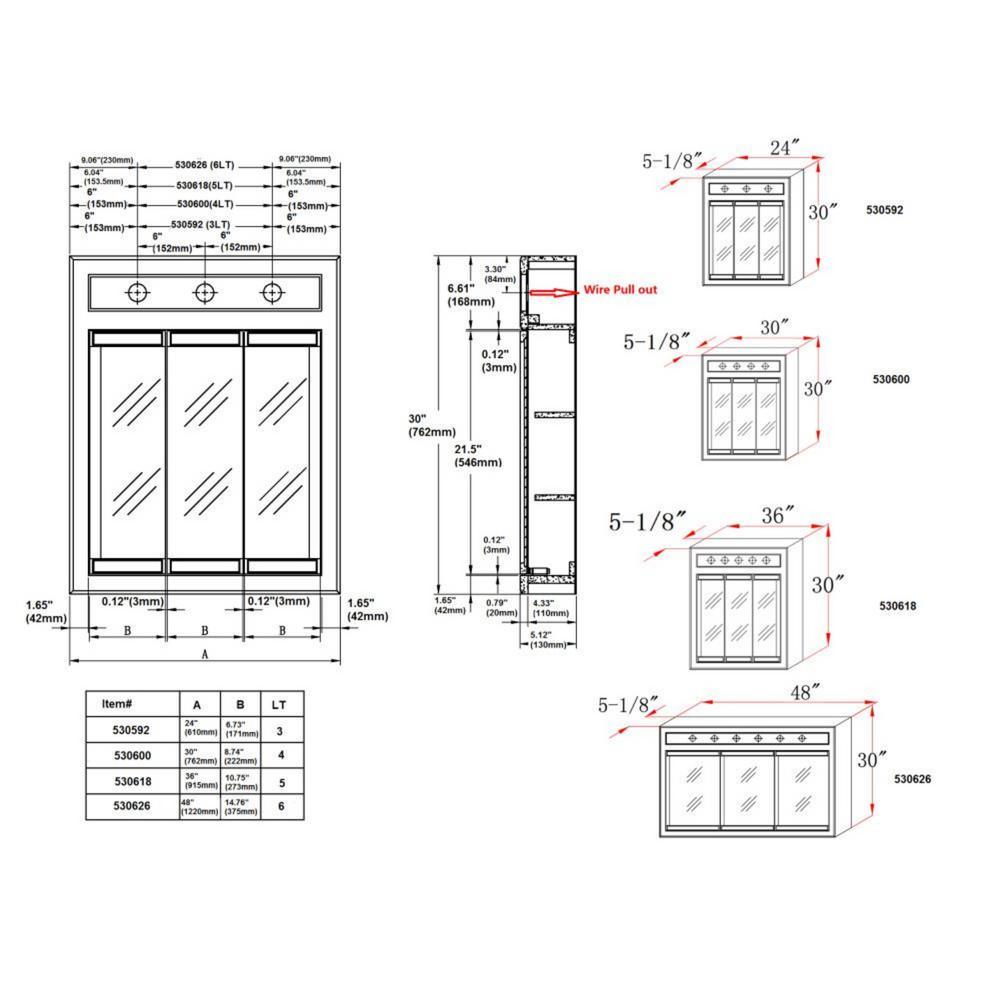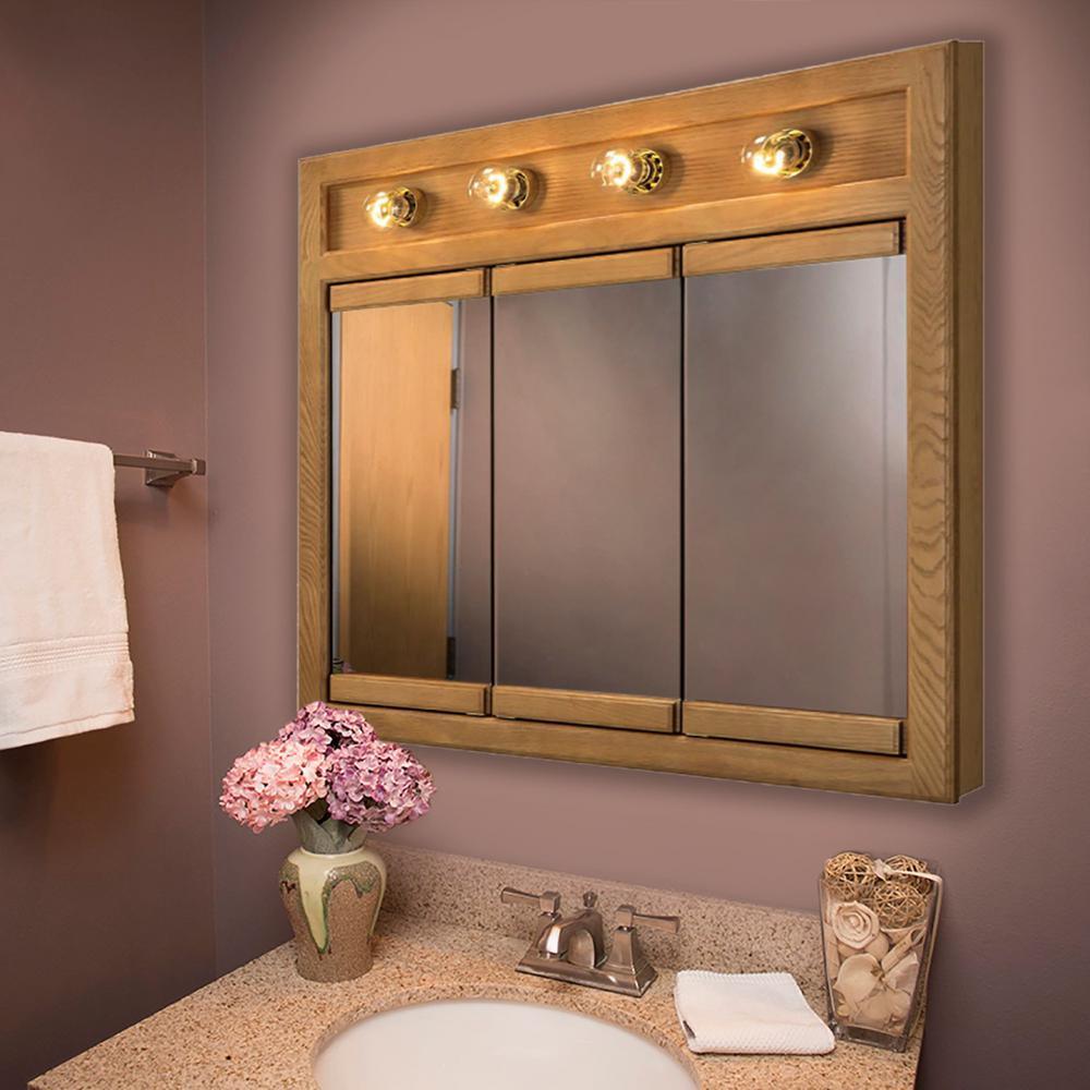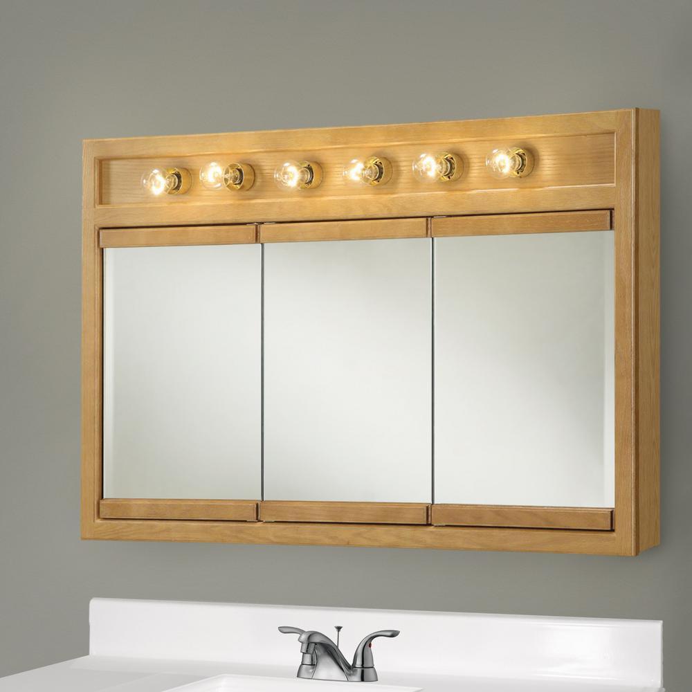 - 48 in. W x 30 in. H 6-light tri-view medicine cabinet provides ample storage