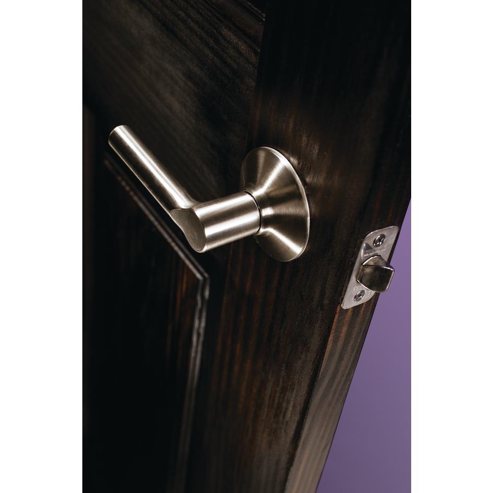The Schlage Broadway Satin Nickel Passage Door Lever is perfect for use on hall and closet doors where locking is not needed. The minimal, tubular design of the Broadway lever offers a tastefully reserved yet high-style look, especially when wrapped in the versatile satin nickel finish. The universal design of this passage door lever set allows it to be mounted to left or right swing doors. Plus, it’s been designed and tested with strength and durability in mind.