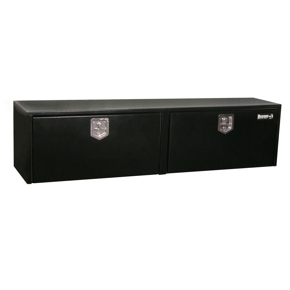 Protect and secure your equipment for the long haul with Buyers Products easy-to-access underbed truck tool boxes. Each professional grade truck box is crafted from strong 14 Ga steel, with a recessed 12 Ga drop door. Boxes feature a locking, stainless steel compression latch that helps protect against theft. The truck tool box is available in a black powder-coated finish and built for long life with aircraft grade cable lanyards, stainless steel continuous hinges, and a watertight gasket system.