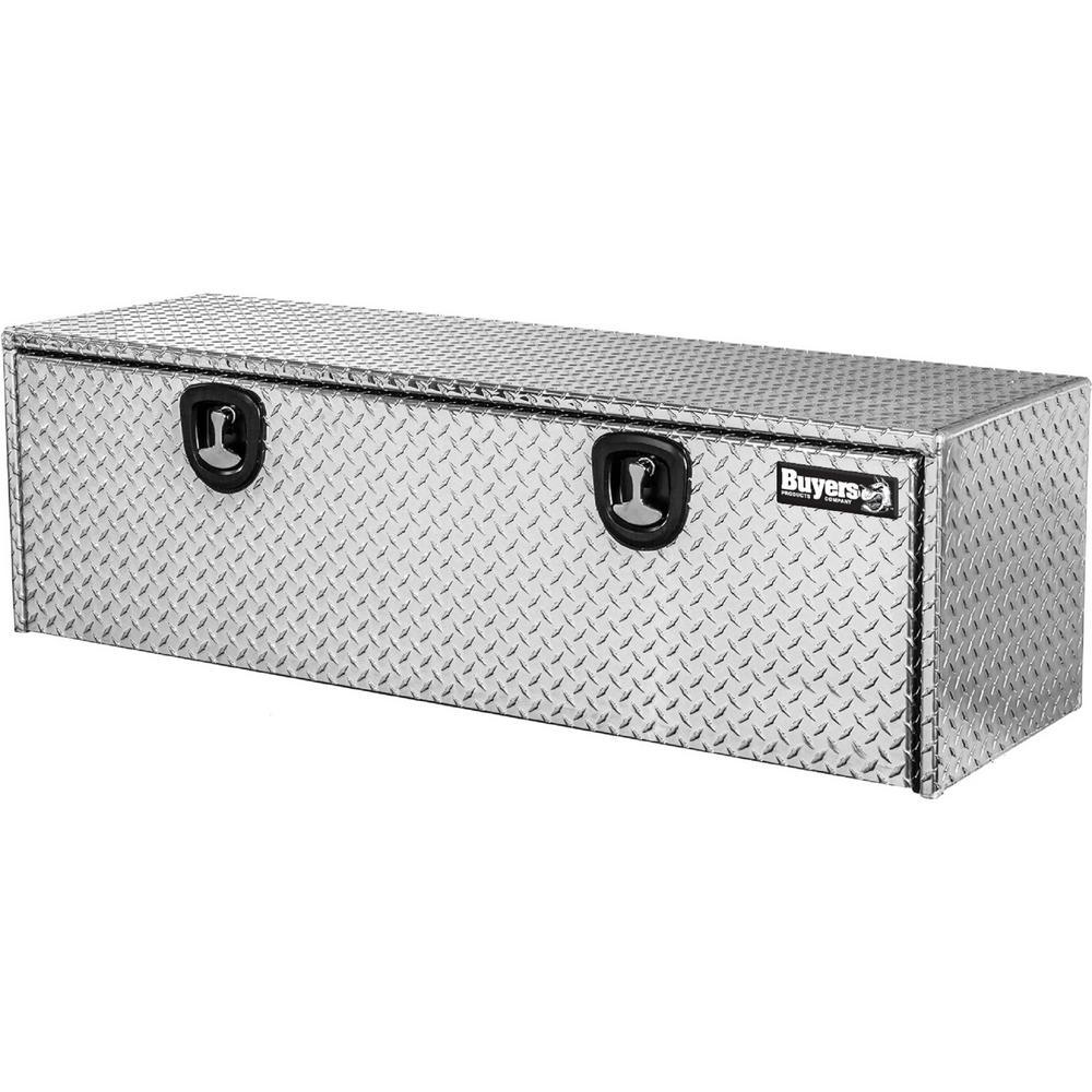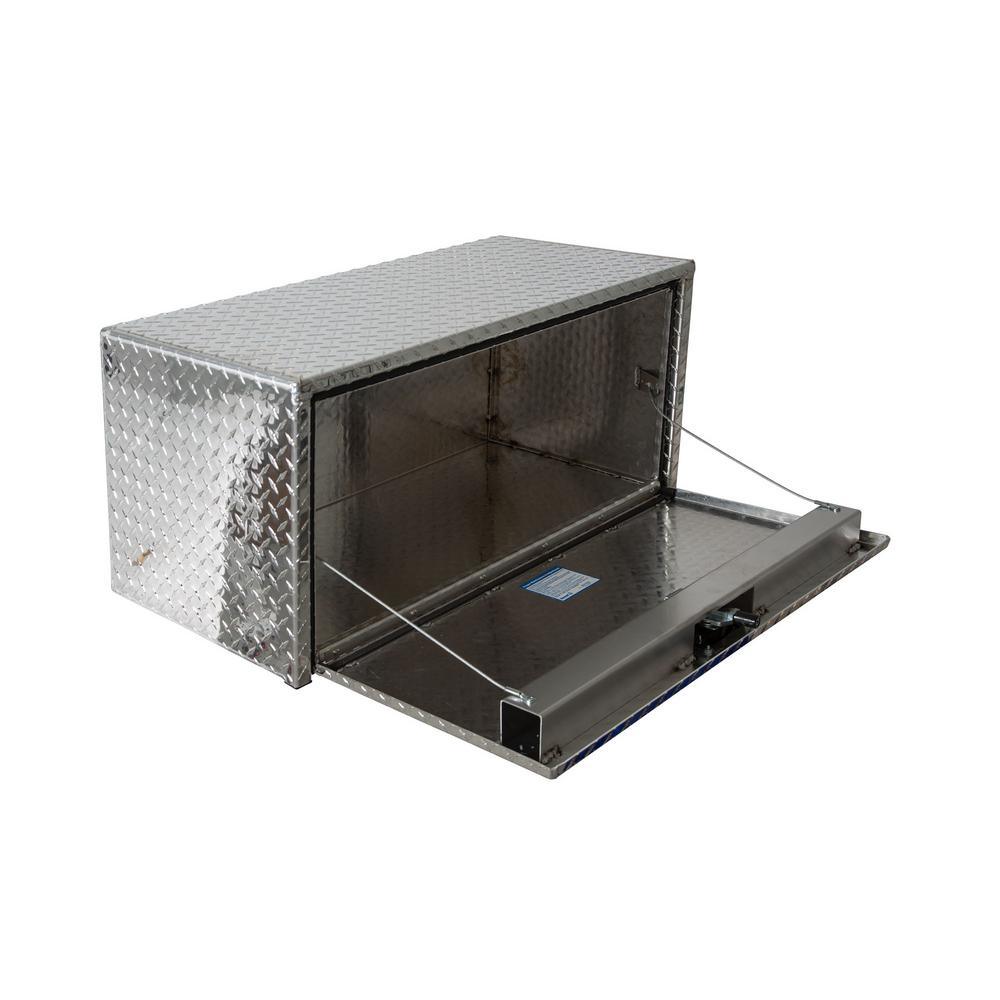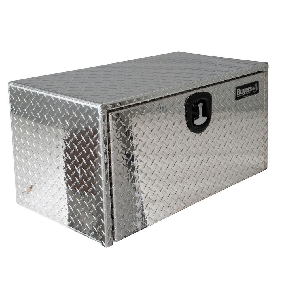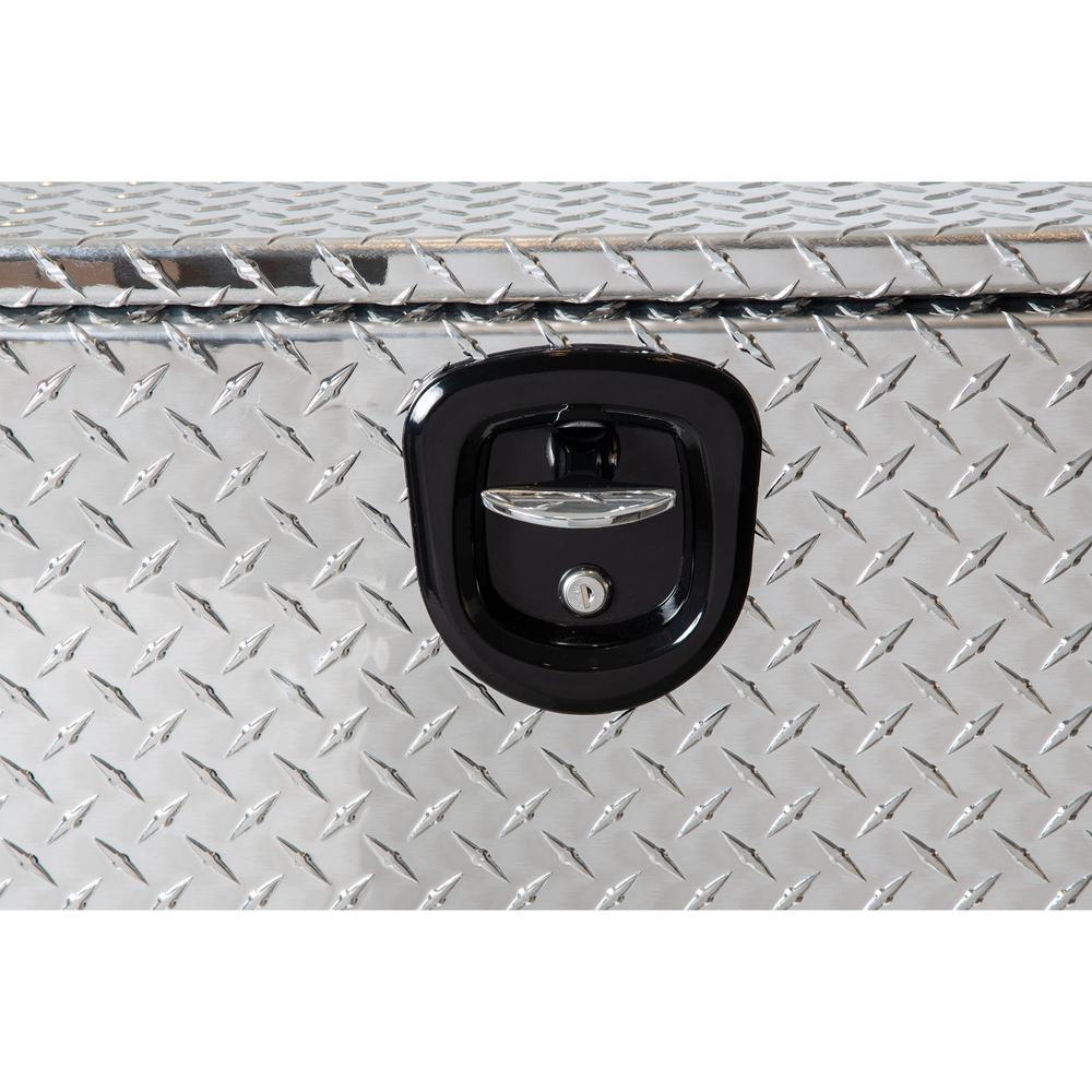 Protect and secure your equipment for the long haul with an underbed truck tool box that offers convenient, easy access on the job site. The Diamond Tread Aluminum Underbody Truck Tool Box from Buyers Products is built to last with durable diamond tread aluminum and, on boxes 36 in. and wider, a structural door backbone. A reinforced, recessed drop door and a locking, die cast, compression latch system helps guard your tools from weather and theft. Units are built to perform for long life with aircraft grade cable lanyards, aluminum continuous hinges, and a watertight gasket system.