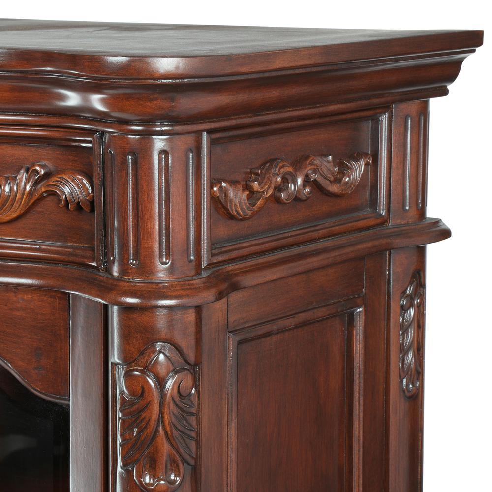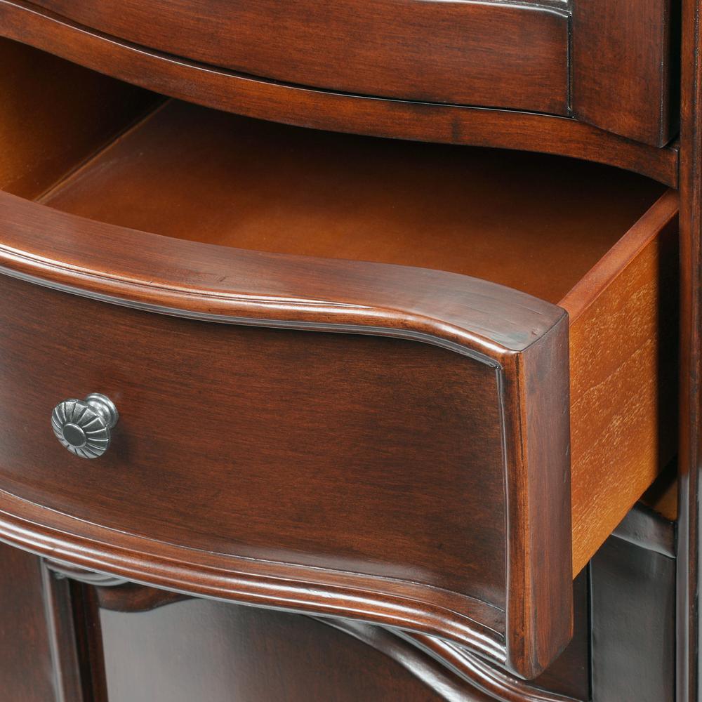 The Provence 24 in. linen tower is offered in a beautiful distressed cherry wood finish with hand carved French details. It is constructed of solid poplar wood and veneer with soft-close doors and drawers that showcase its quality. The linen tower offers a clear glass door with interior shelves and soft-close drawer for storage.