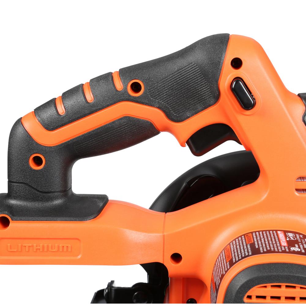The BLACK & DECKER features a compact design for ease of use. Works with the entire Black & Decker 20v Max System (battery and charger not included). This saw is backed by a BLACK & DECKER 2 year limited warranty for added peace of mind.