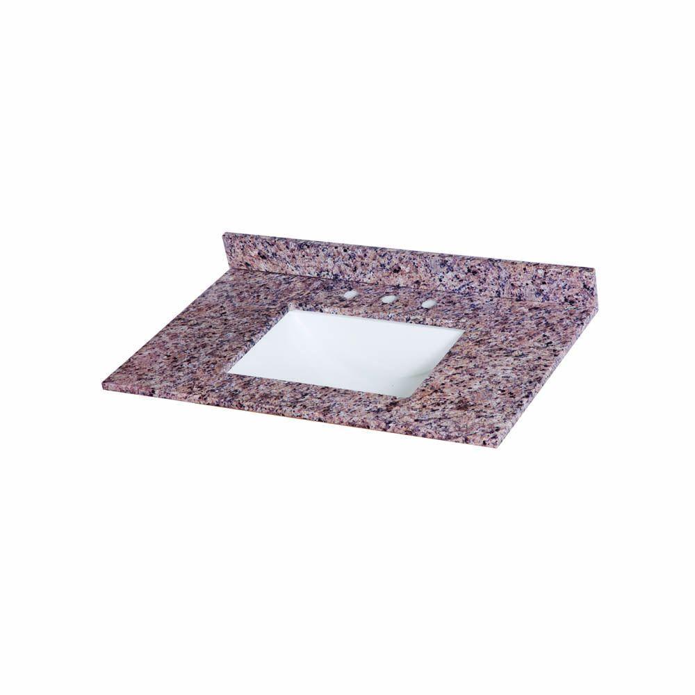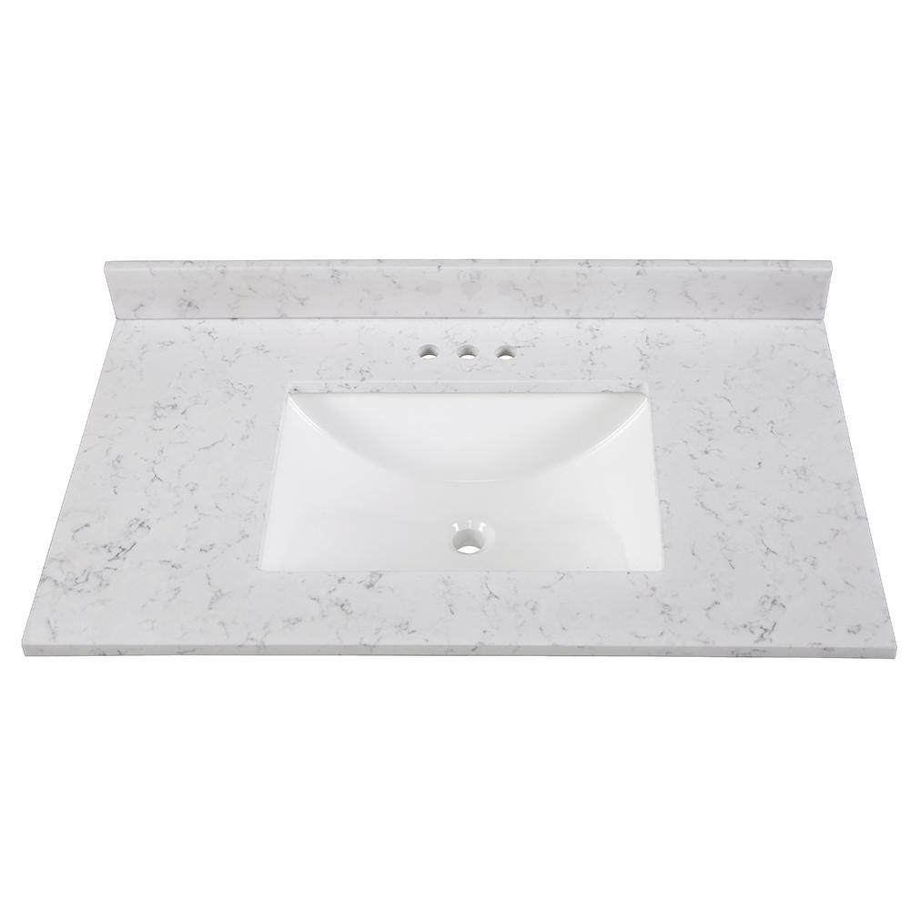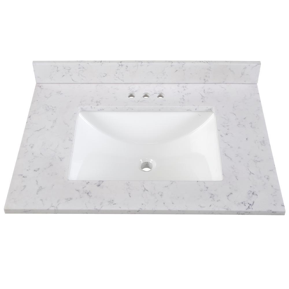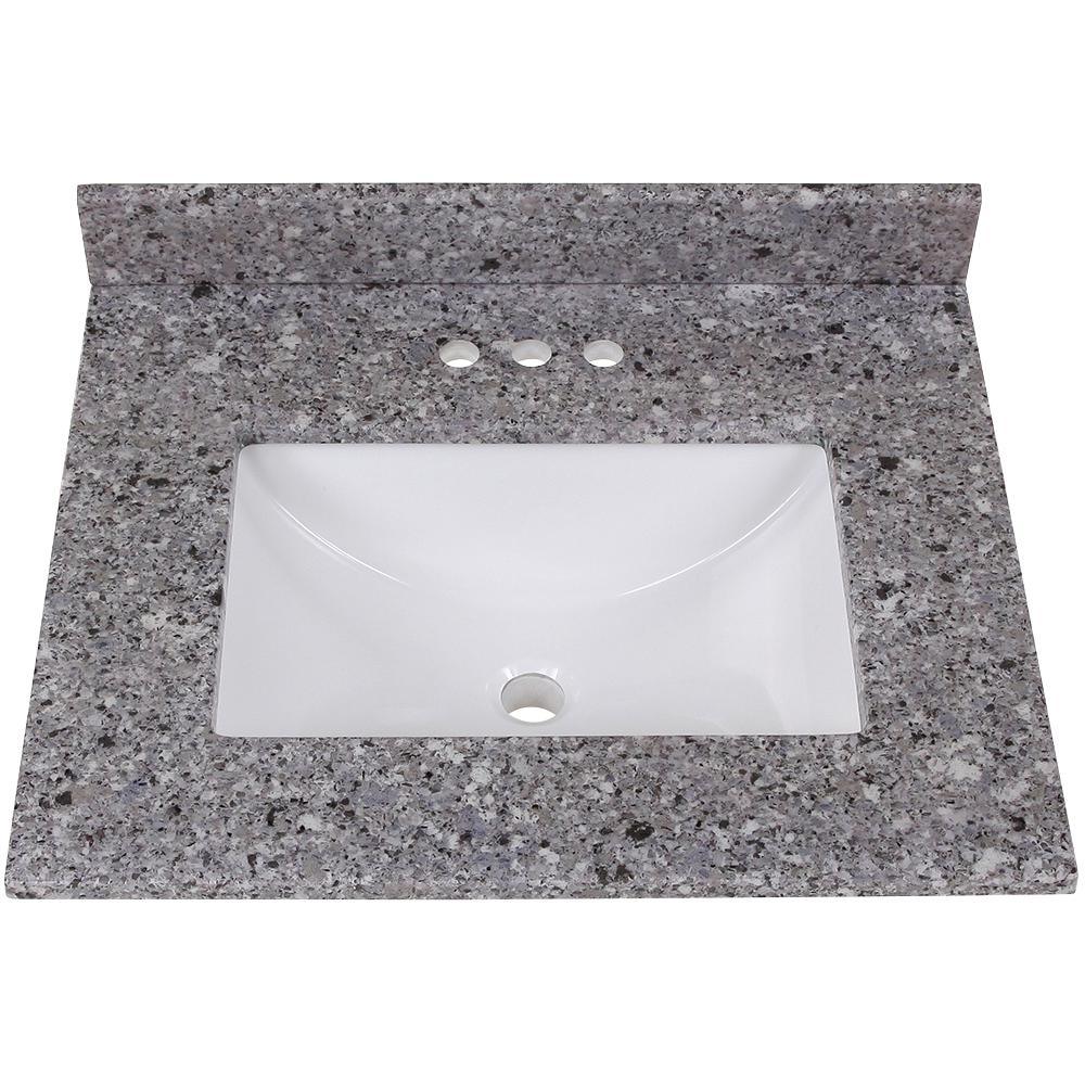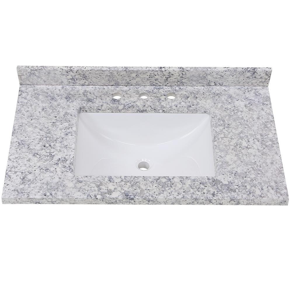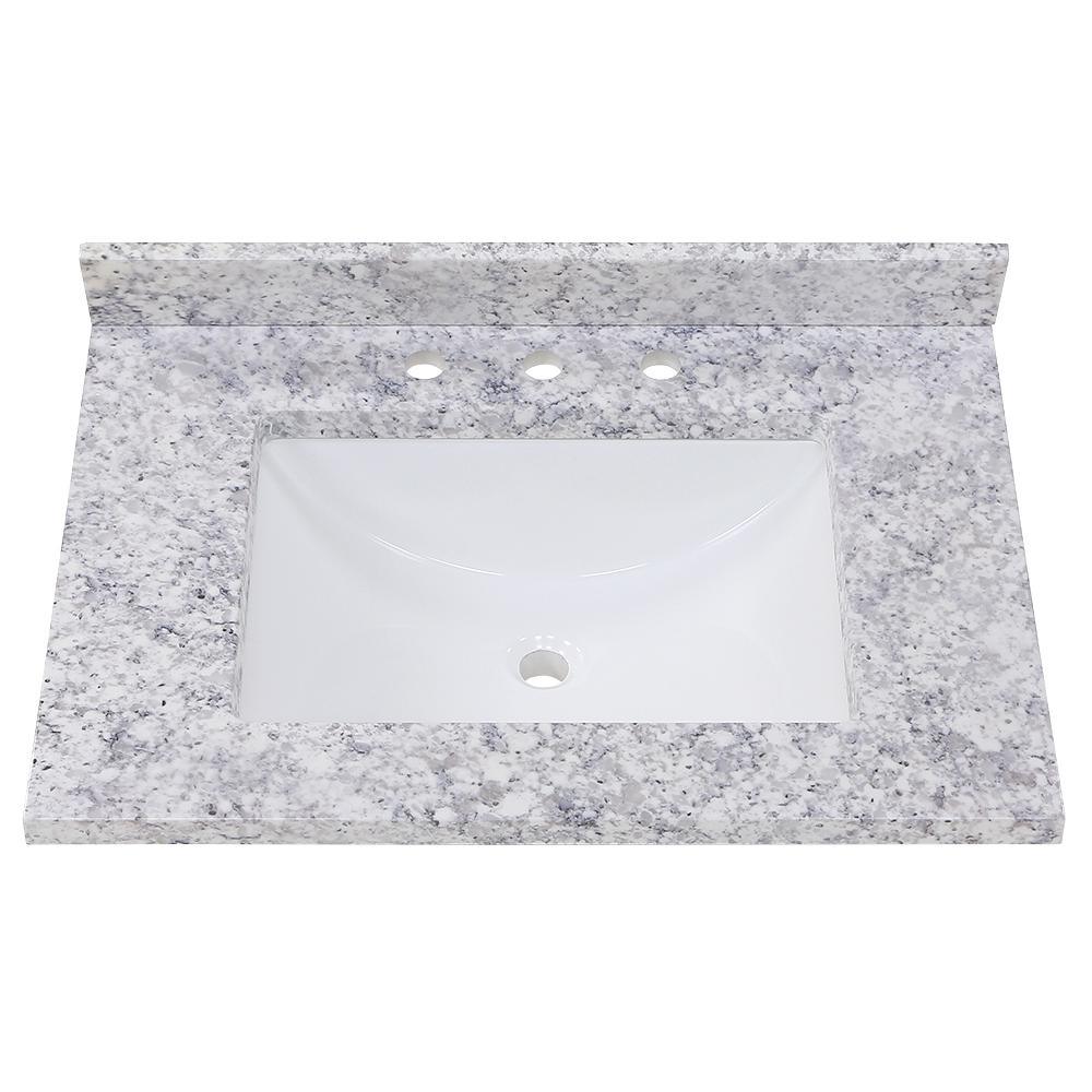 The Stone Effects 49 in. W Vanity Top in Rustic Gold features natural stone-like surface patterns that instantly add elegance and beauty to your bathroom. Coated with Diamond Shield, a surface coating that makes the vanity top resistant to stains, bacteria, mold and mildew; this durable vanity top is pre-attached to a white bowl for your convenience. The vanity top's 3-1/2 in. backsplash helps protect the wall and back of your cabinet against splashes and spills.