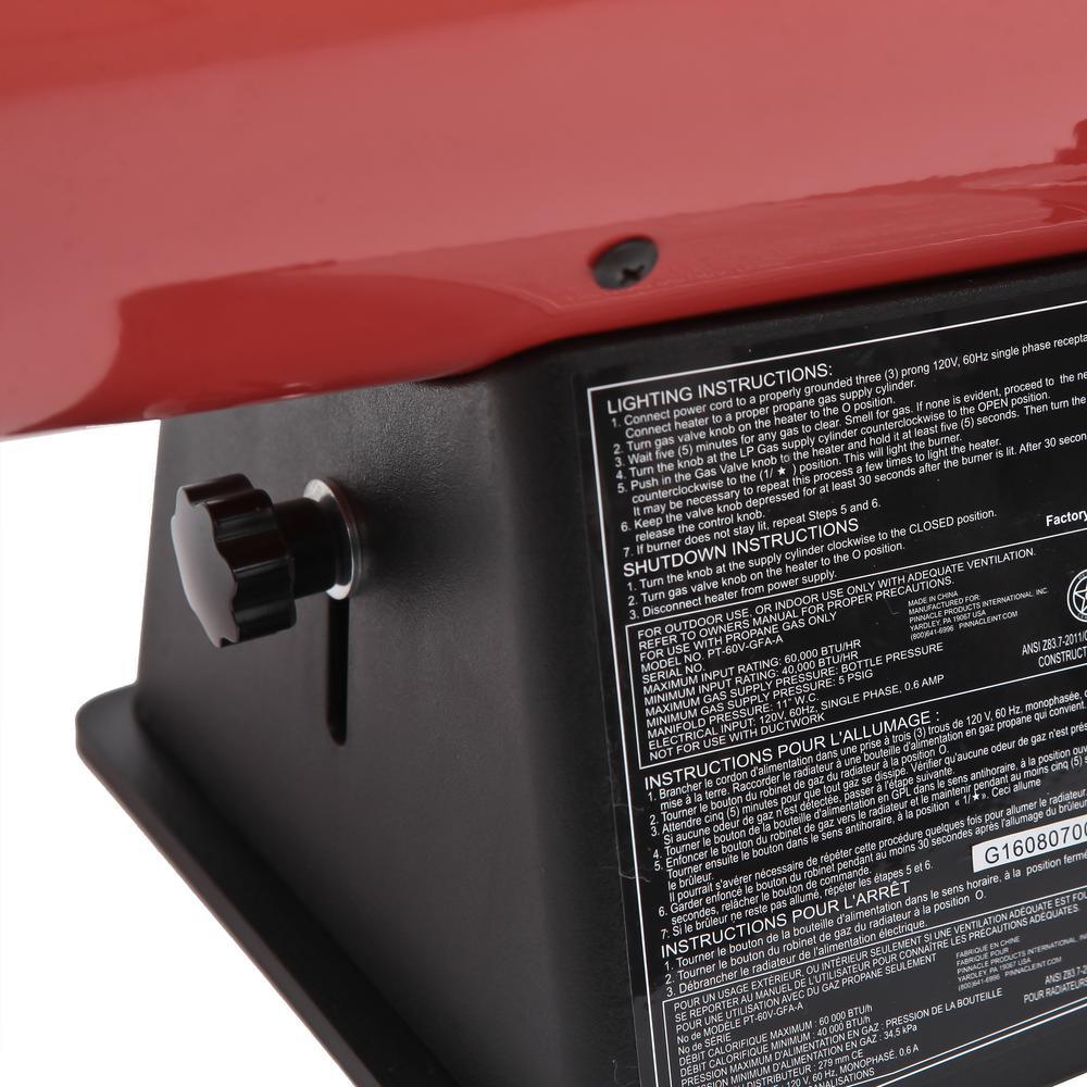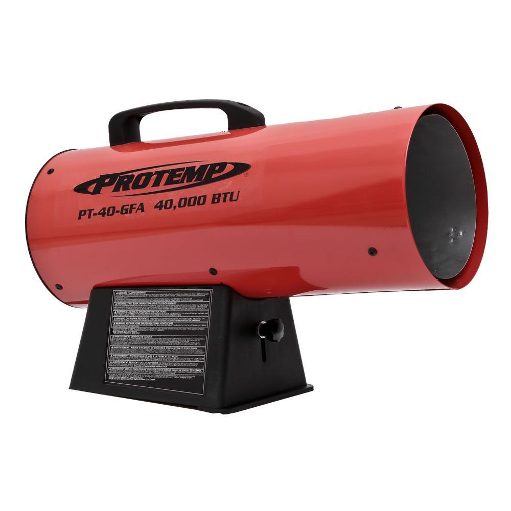 Introducing the ProTemp 40,000 BTU Forced-Air Propane Space Heater - a reliable and efficient option for heating up to 1000 sq. ft. in your shop, garage, or barn. This time-tested design includes advanced safety features and fully enclosed gas controls for your peace of mind. With three heat settings and a durable steel construction, this heater can provide up to 11 hours of heat using just one 20 lbs. tank of propane. Plus, it has been CSA certified for use with a 20 lbs. propane tank and comes with a 10 ft. hose and regulator for added convenience. Trust the experts at ProTemp for all your heating needs.