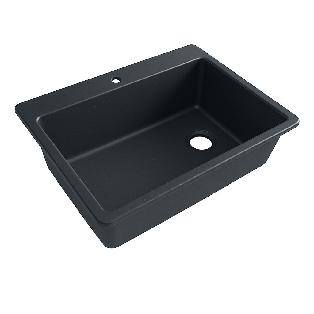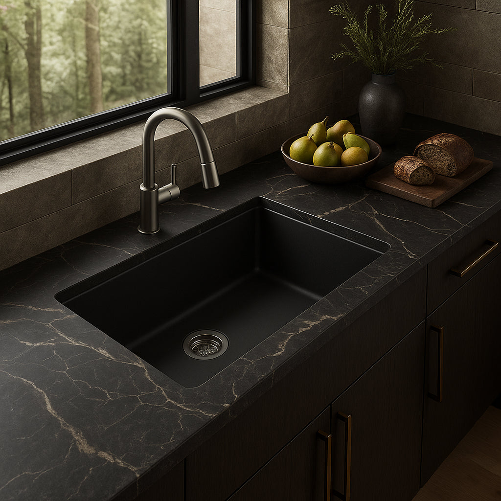 The KOHLER Kennon sink combines a sleek matte black finish with the durability of granite composite. Its single-bowl design and dual-mount installation make it a versatile and stylish choice for any kitchen.
