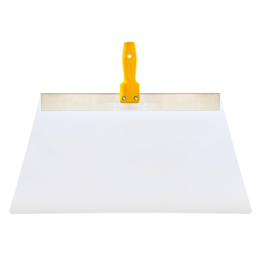 The 24 in. Knockdown Knife with Clear Lexan blade is used to flatten wall and ceiling texture patterns for that "knocked down" look. It erases trowel lines without creating chatter marks like other knives. The blade is both flexible and durable.