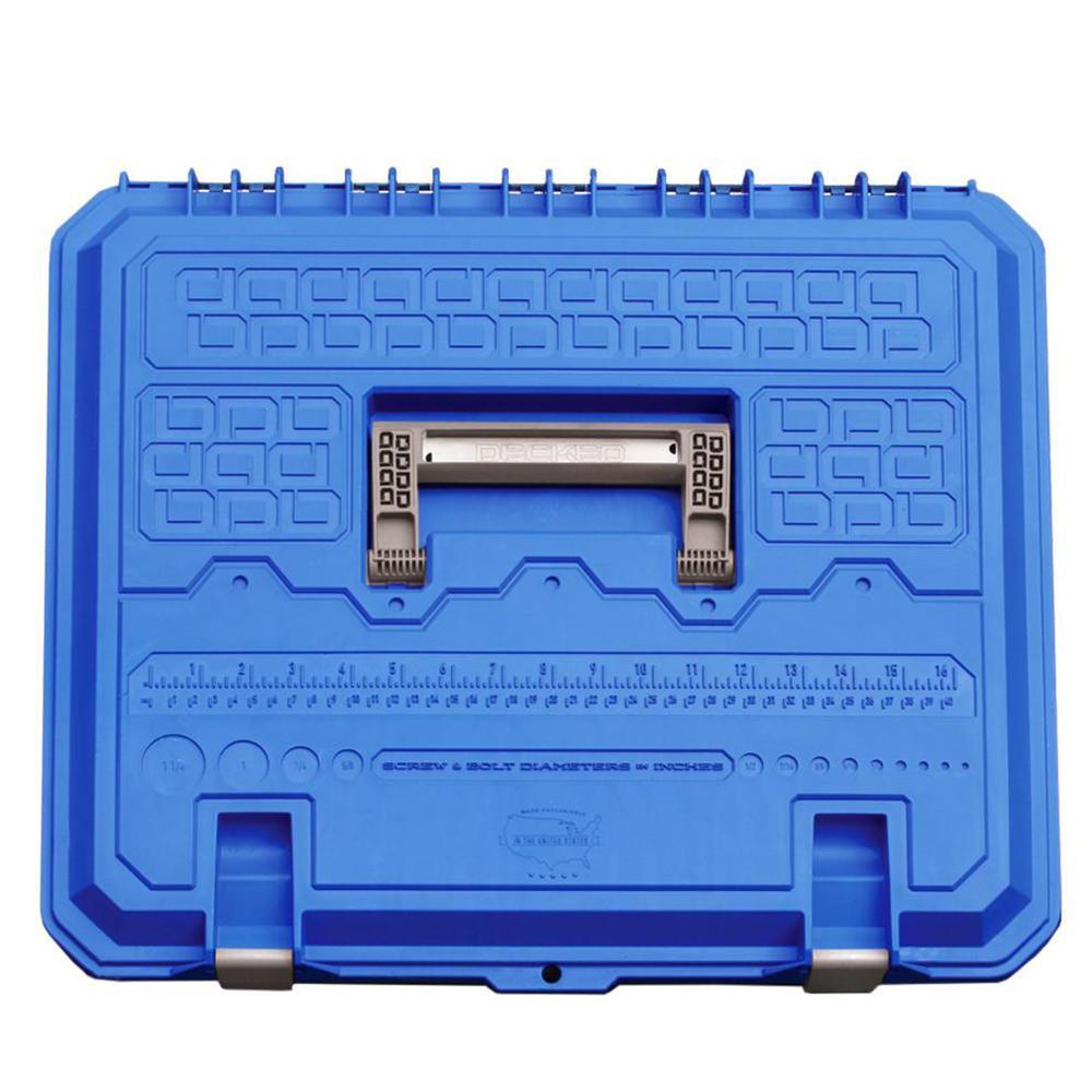 - DECKED D-Box features: 2 recessed locking levers, 2 grip points, ruler and common bolt/bit guide, horizontal and vertical handles and an interior EPDM gasket