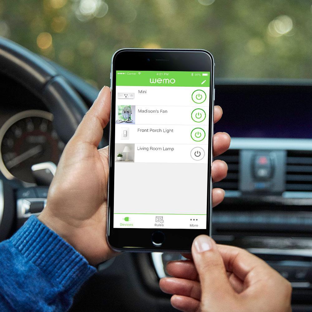 The WeMo Wi-Fi enabled Mini Smart Plug lets you turn lights and electronic devices on or off from anywhere. Boasting a sleek new form-factor that allows you to stack two Smart Plugs in the same outlet, the WeMo Mini gives you control of your lamps and electronic devices whenever you want, wherever you choose, with tons of options for scheduling and automation. Pair with Google Home and you can control your lamps and appliances with just the power of your voice. Pair WeMo with a Nest Thermostat and you can set your lights to turn off automatically when you leave the house and on when you return home. No hub or subscription is required. WeMo Mini Smart Plug also features an on/off switch on the unit, in case Wi-Fi is not active. Works with any smartphone or tablet with Apple iOS 8 or higher and Android 4.1 or higher. Electrical Rating 120-Volt/15 Amp/60Hz/1800-Watt.
