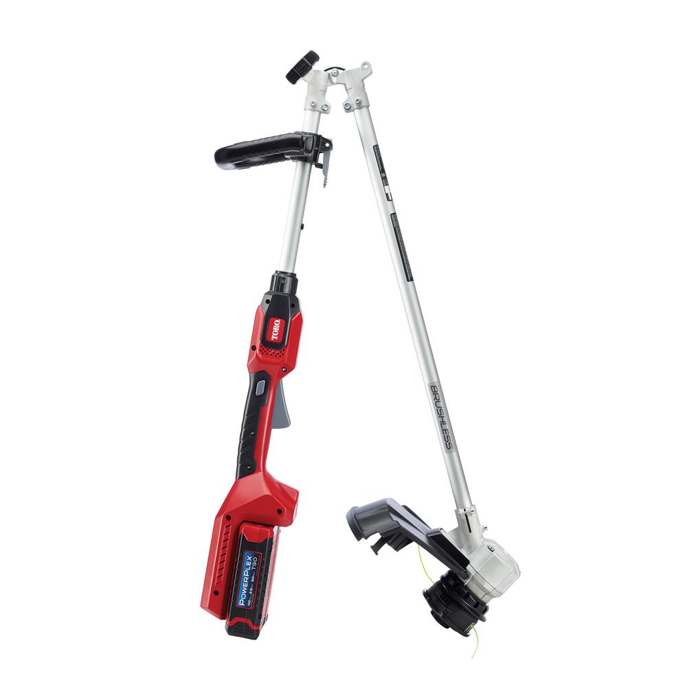 Take charge of the overgrown grass with Toro's PowerPlex 14 in. BLDC String Trimmer. This cordless, 40-Volt MAX string trimmer has a highly efficient brushless motor that supplies more power, a longer life and more run time than a brushed motor. It is built for durability with its cast aluminum head, steel shaft and heavy-duty dual trimming line. The variable speed trigger allows you to run the machine as needed - more power or more run time. Its unique foldable shaft makes it easy to store and easy to transport. Step up to this trimmer for a super powerful, efficient and long lasting tool. With 90-Watt hours, the T90 battery provides up to 40 minutes of run time and this battery charges in approximately 60 minutes in the quick charger. Take charge of the yard with Toro PowerPlex tools.