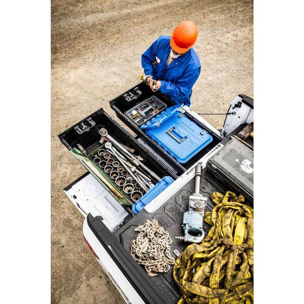 DECKED revolutionized Pickup Truck Bed Storage with a low-profile truck bed tool box system that is compatible with Ford, Dodge RAM, Chevy, GMC, Nissan and Toyota full-size trucks. 2 full bed-length drawers offer dry, secure storage with ergonomic access for tools, gear, guns, fishing rods and other items that slide out at waist height, while still allowing the owner full use of their truck or van bed. DECKED has a 2,000 lb. payload on the deck and 200 lbs. per drawer load capacity. Covered by 3-year warranty against product defects or failure due to workmanship. Further organization and customization is possible with optional nesting storage boxes, drawer dividers, tie downs and locks. DECKED Storage Systems are easy to install or remove, weatherproof, secure, and ergonomic. With a low-profile design the DECKED Storage System leaves plenty of room for further upfitting. DECKED Truck Storage Systems are perfect for small businesses like painters, carpenters, plumbers and handyman services. DECKED Storage Systems were also designed with the outdoors enthusiast in mind, allowing you to carry fishing, hunting or any kind of sports gear you can imagine. Note: drawers are not water or airtight, some fine particulate matter such as dust and water vapor may enter. Assembly and installation time approximately 2 hours. Removal/reinstall time approximately 15-20 minutes.