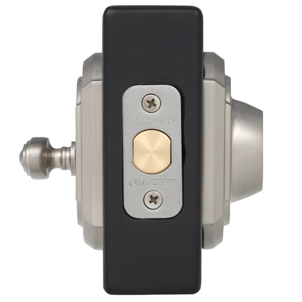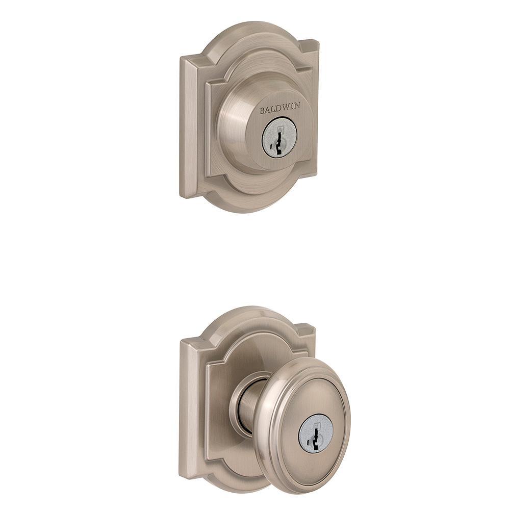 The Baldwin prestige single cylinder satin nickel arched Deadbolt is built from solid brass. It features SmartKey Security technology for easy re-keying. It achieves ANSI Grade II and includes 2 keys and hardware.