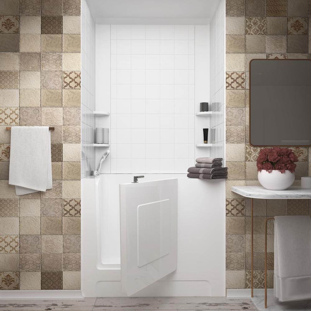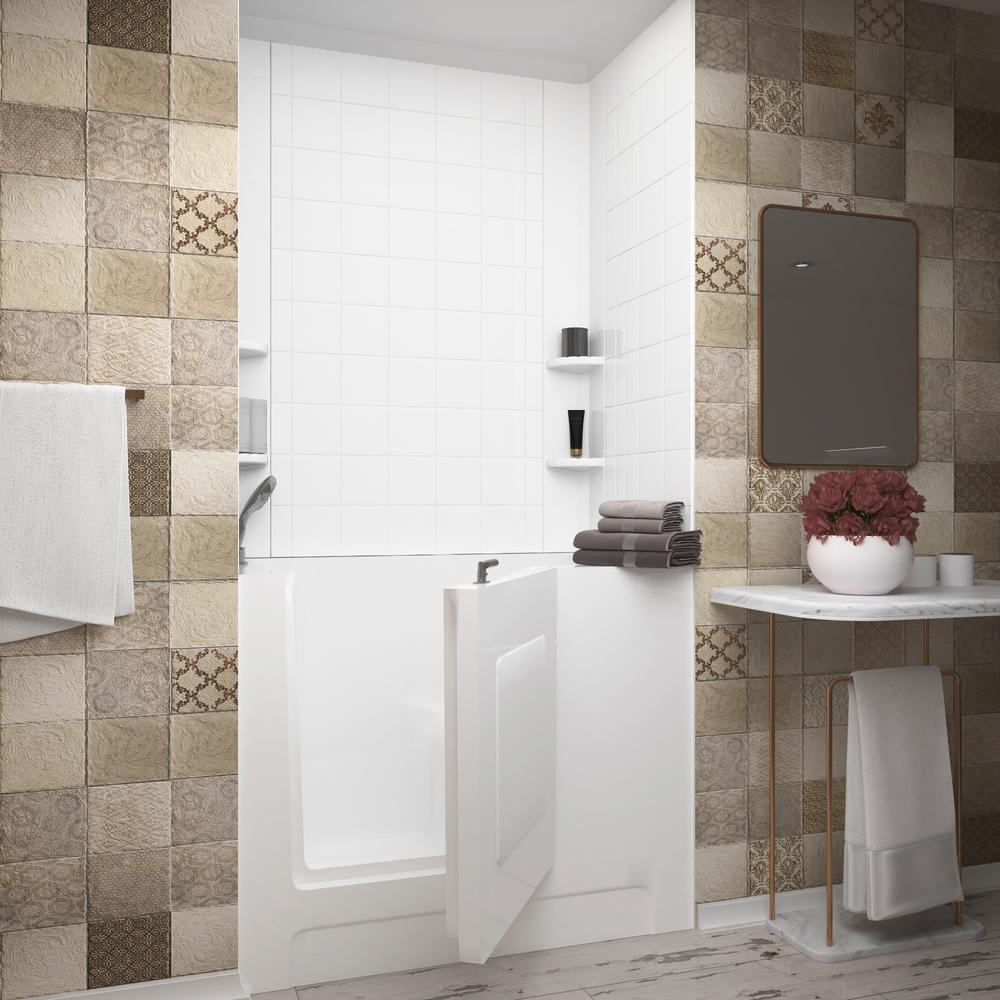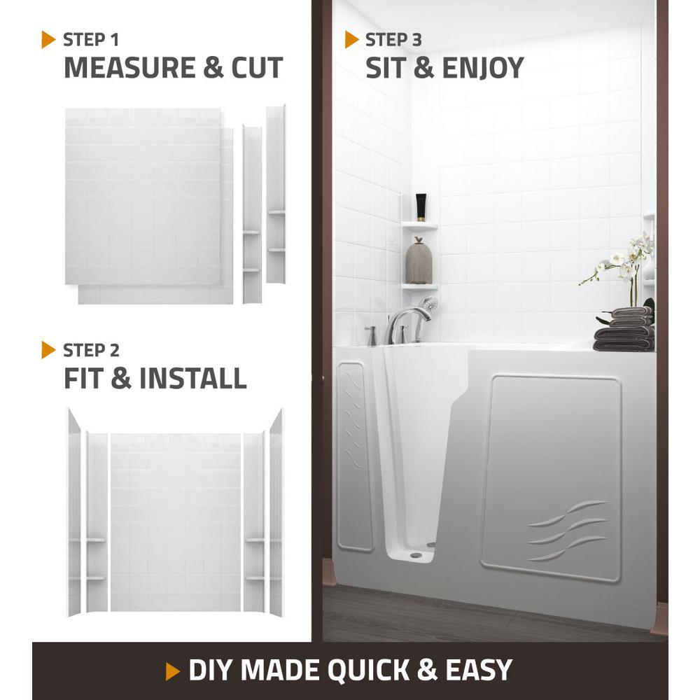 • Includes two (2) 60x60 in. 6 in. square tile rampart wall surround sheets, two (2) 60 in. tall corner caddies, ten (10) clear silicone tubes, double sided adhesive strips, two (2) caulking tubes, HD2747LWS Nova Heated walk-in bathtub
