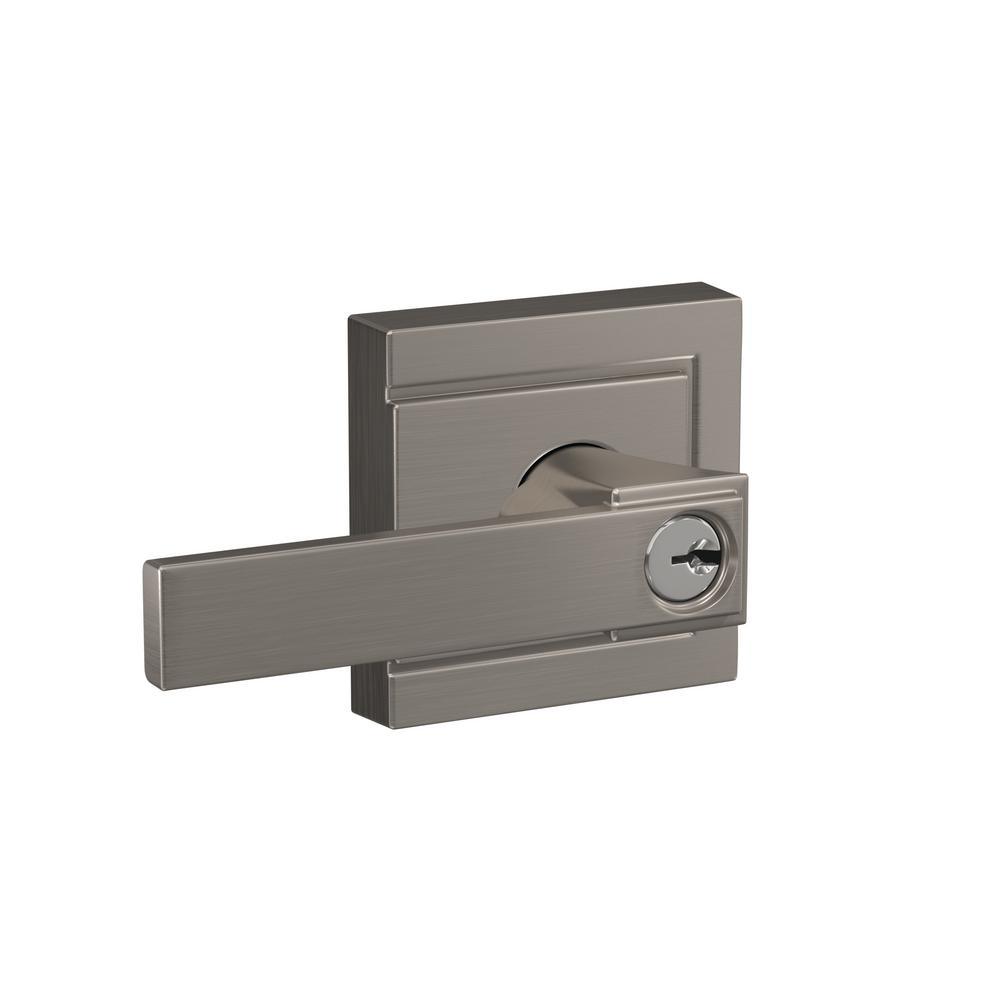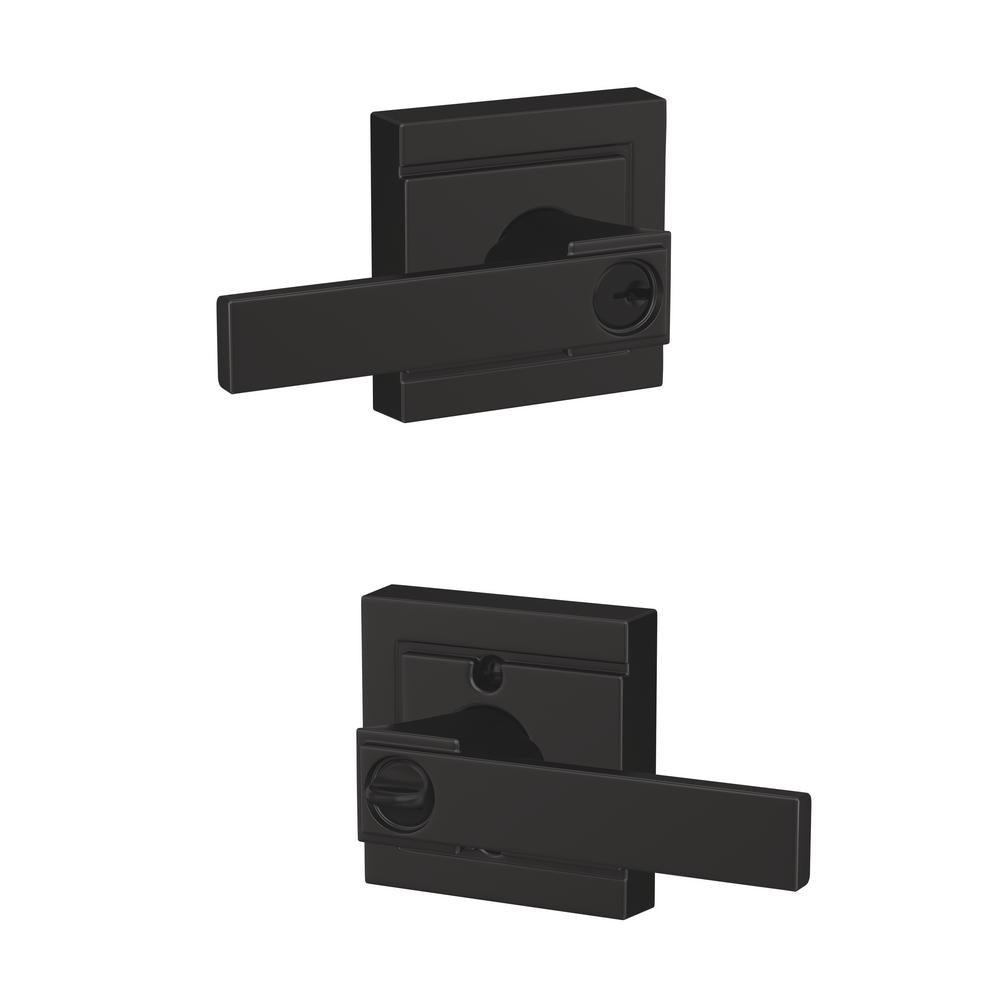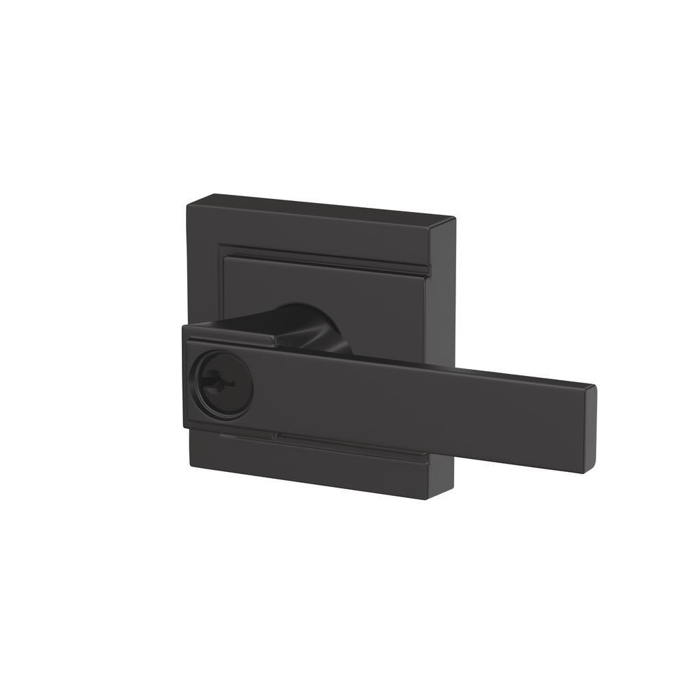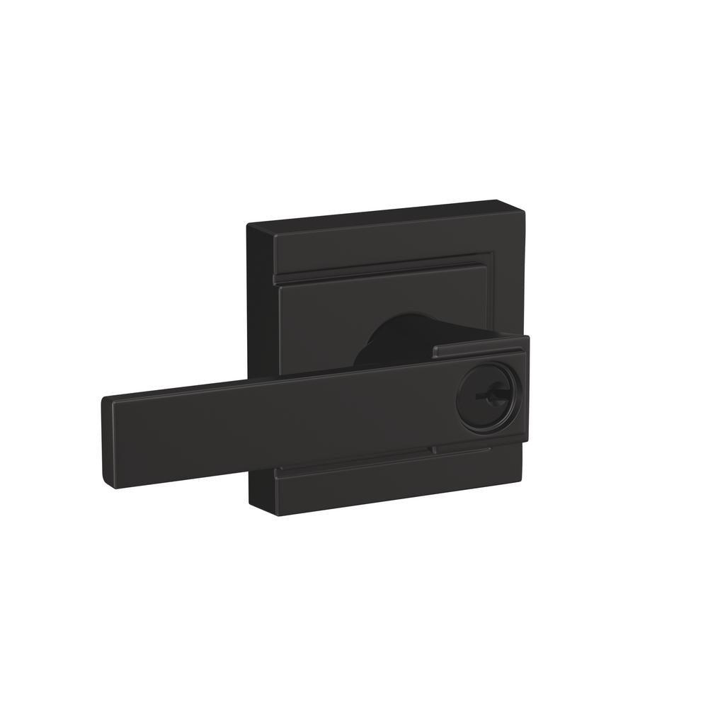 The Schlage Northbrook Matte Black Keyed Entry Door Lever with Upland Trim unlocks when the door is opened from the inside, allowing you to leave quickly and conveniently, and re-enter easily. The Northbrook lever is imaginative and refined with a strong contemporary influence, while the Upland trim offers a fresh take on simplistic design. The striking appearance of the Matte Black finish creates an elegant look that's sure to be noticed in any style setting. Plus, its been designed and tested with strength and durability in mind.