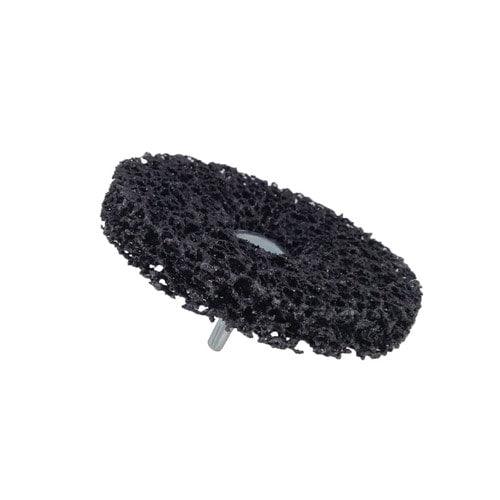 Easily removes paint from wood and metal surfaces 4-in shaft-mounted paint and rust stripping product designed for use on a standard electric drill Features Scotch-Brite abrasive web that won't rust or splinter like wire brushes Conforms to surface contours and reduces gouging Consists of a nylon web, phenolic resin and coarse grade silicon carbide mineral for long life and excellent stripping performance Cleans rusty surfaces